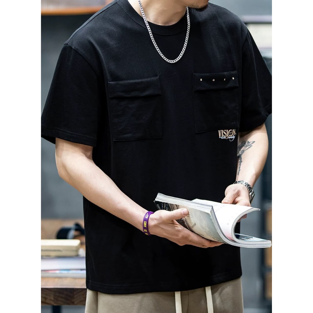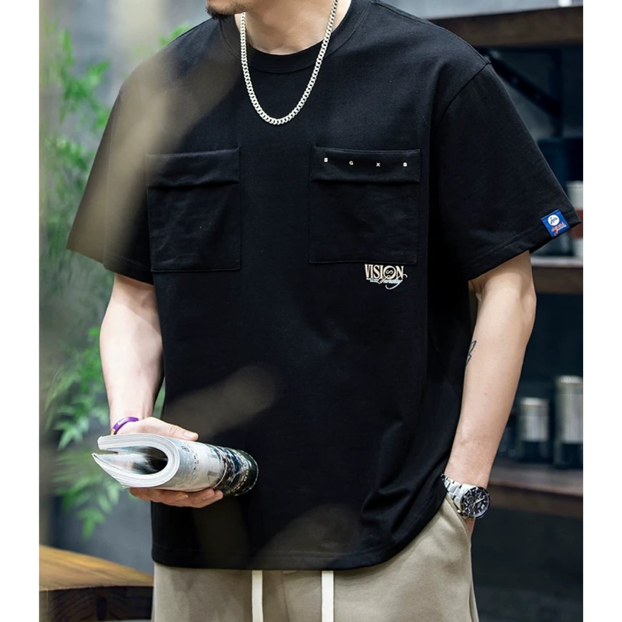 ボックスシルエット クルーネック ポケットTシャツ 00278