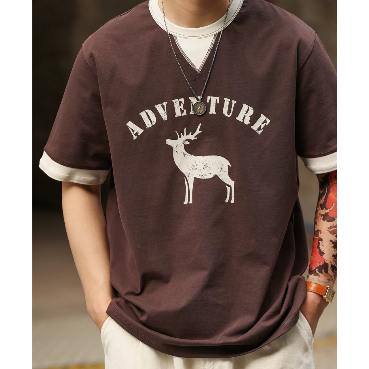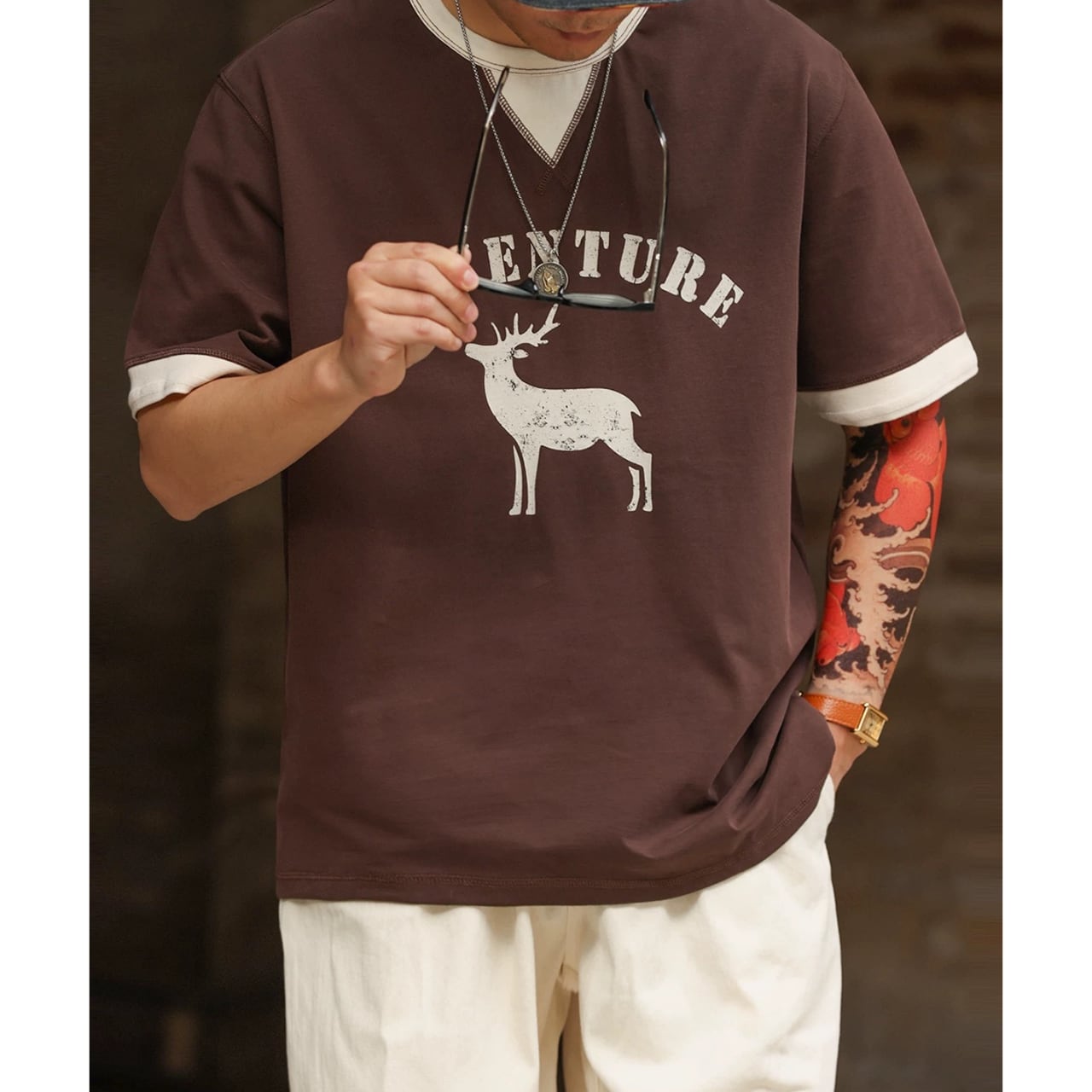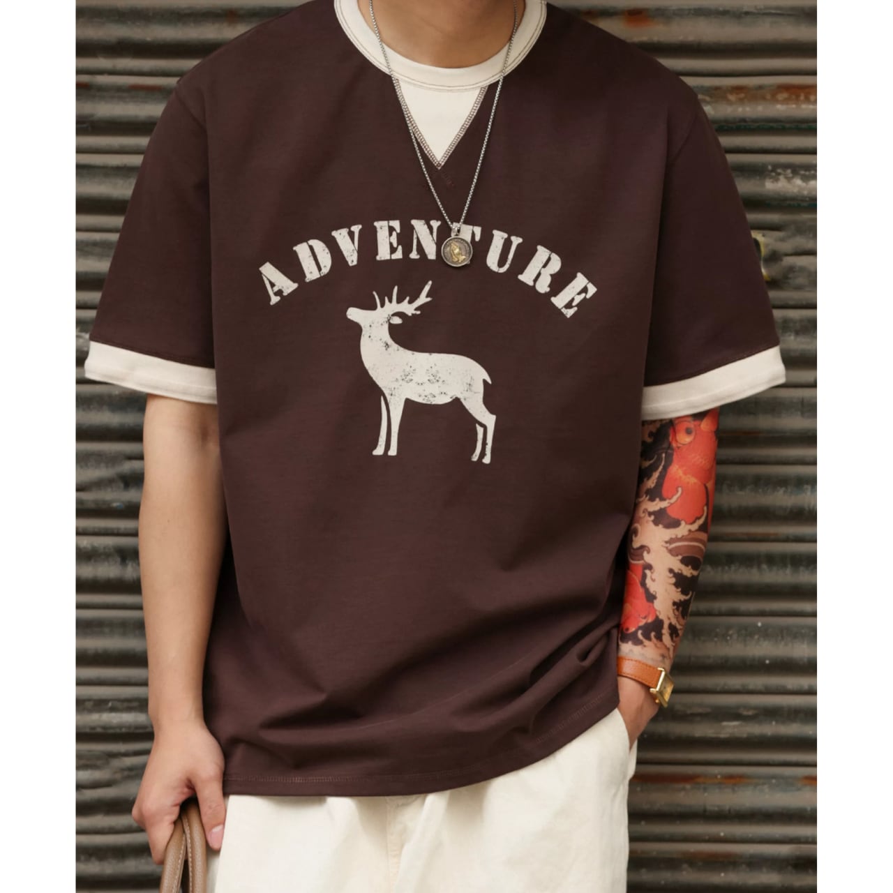 鹿柄プリント ボックスシルエット クルーネックTシャツ 00356