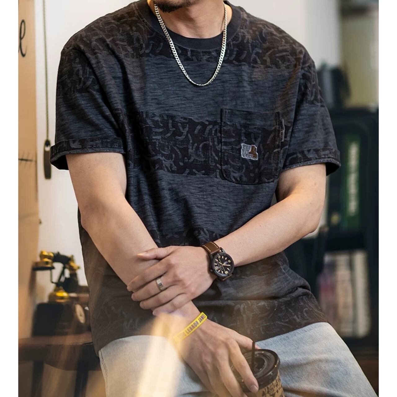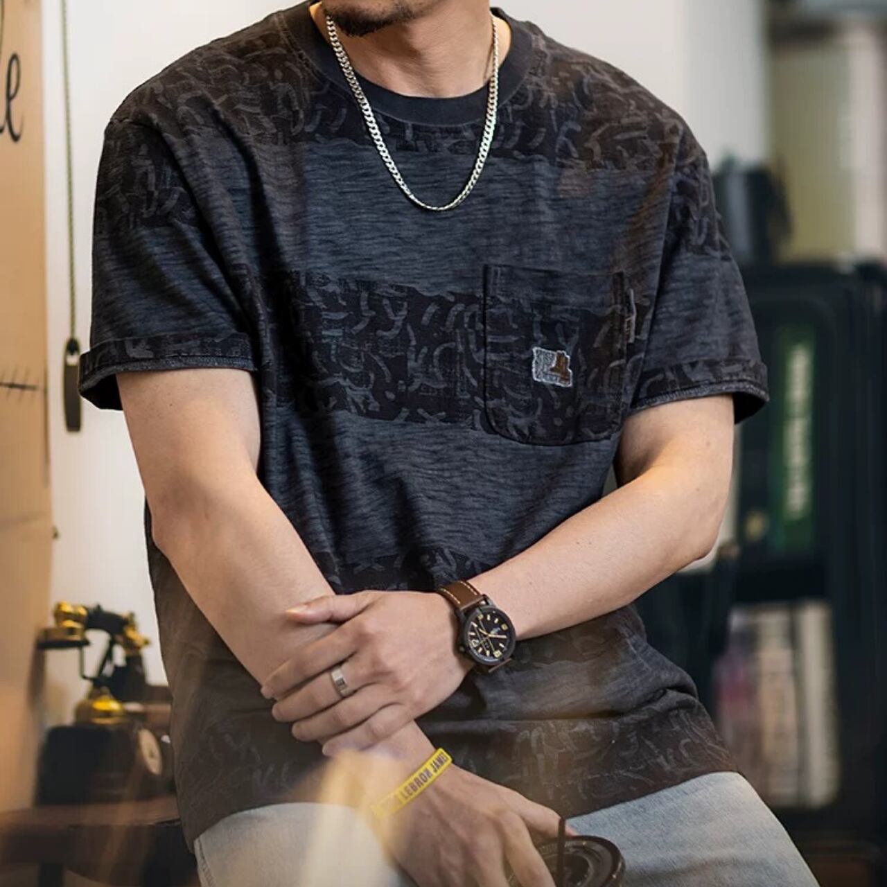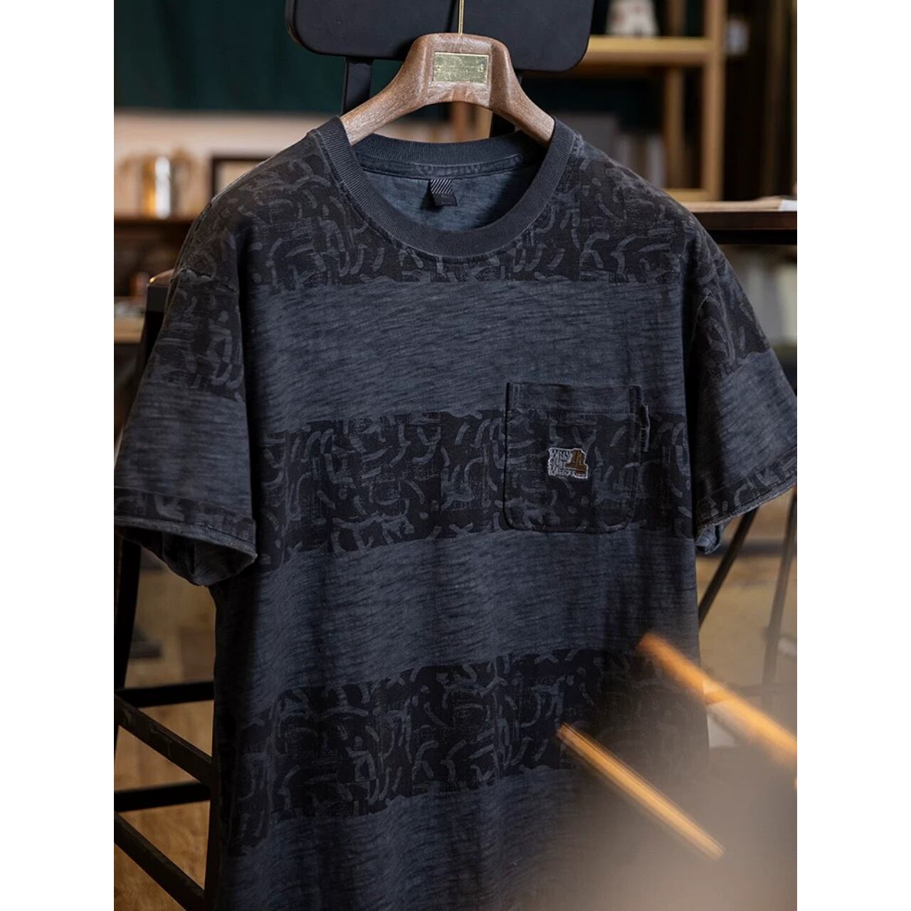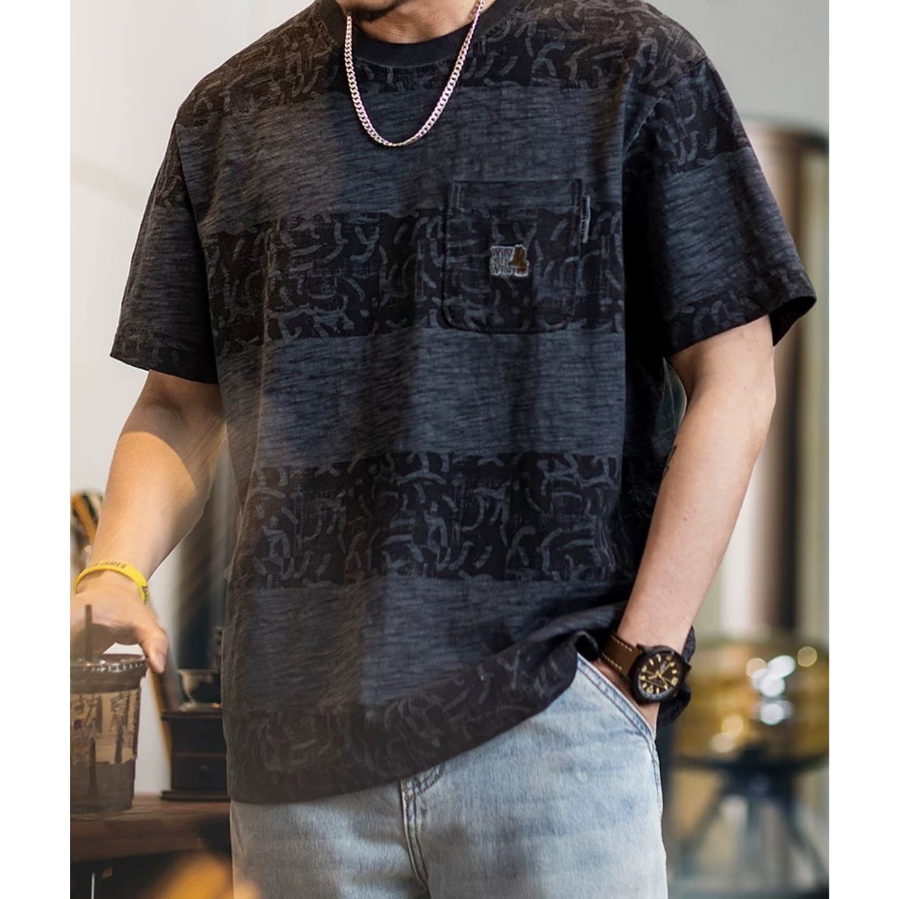 ポケット付き グラフィックプリント レギュラーフィットTシャツ 00354