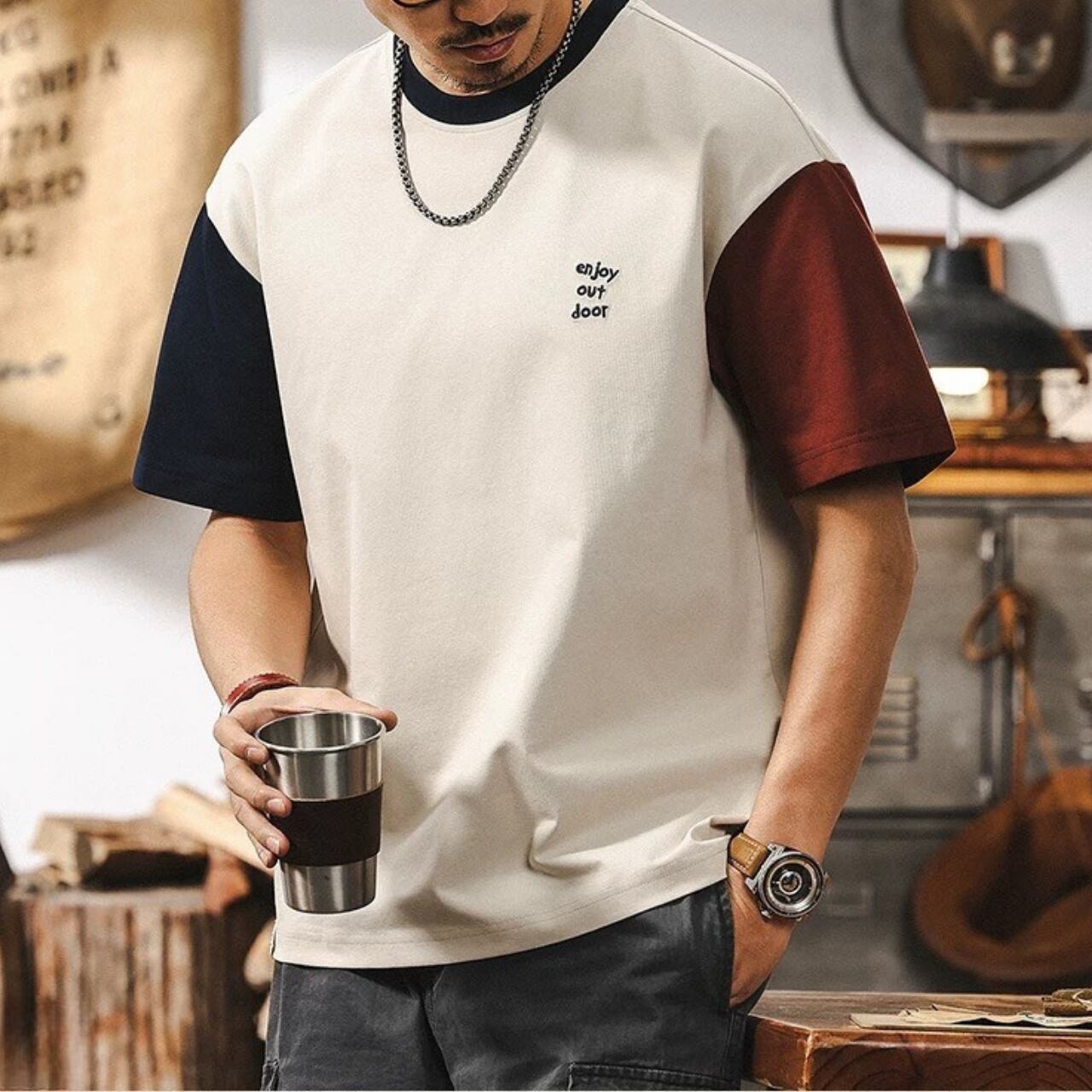 配色切り替えデザイン ラグランスリーブ クルーネックTシャツ 00386