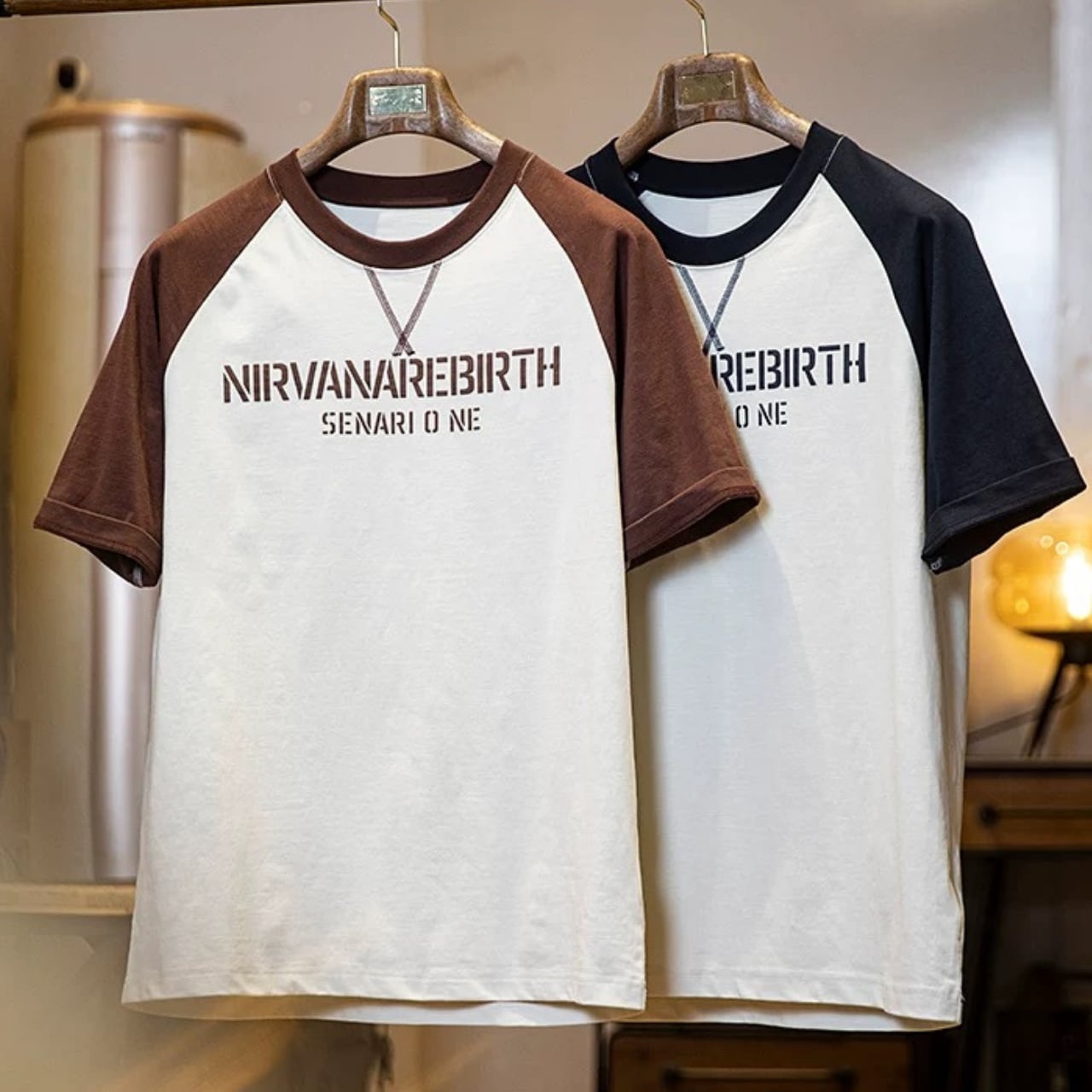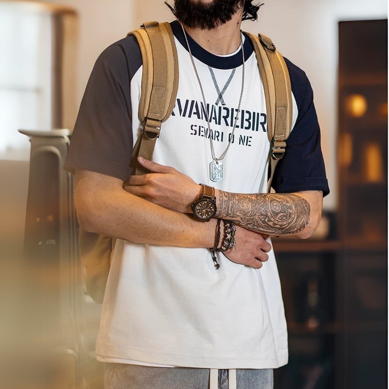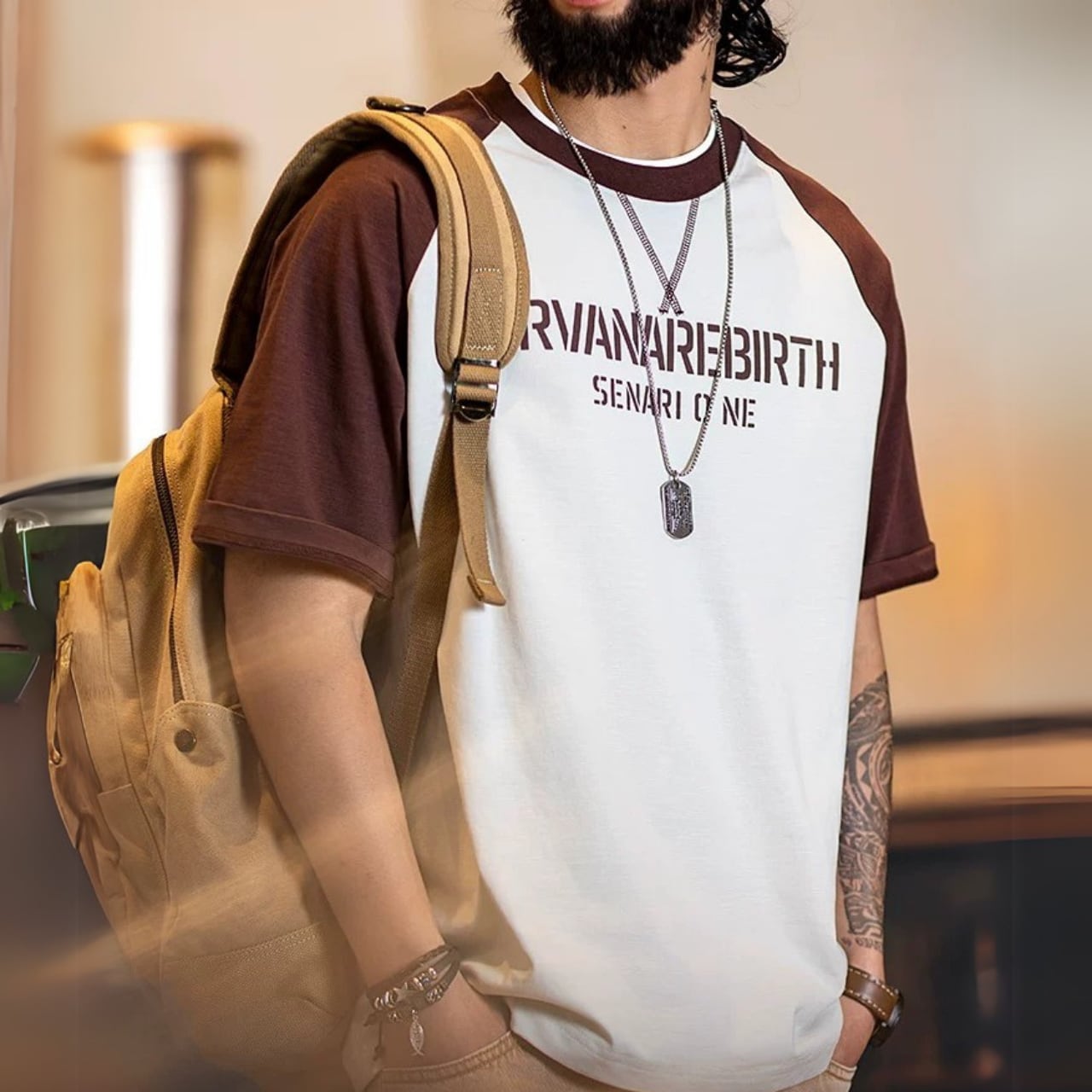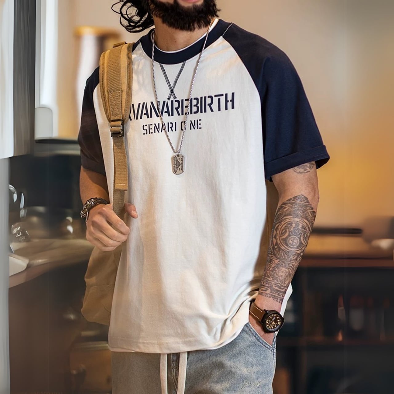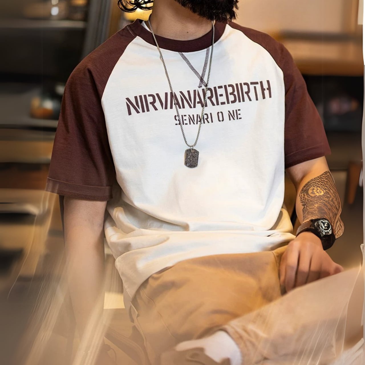 ラグランスリーブ クルーネック テキストプリントTシャツ 00400