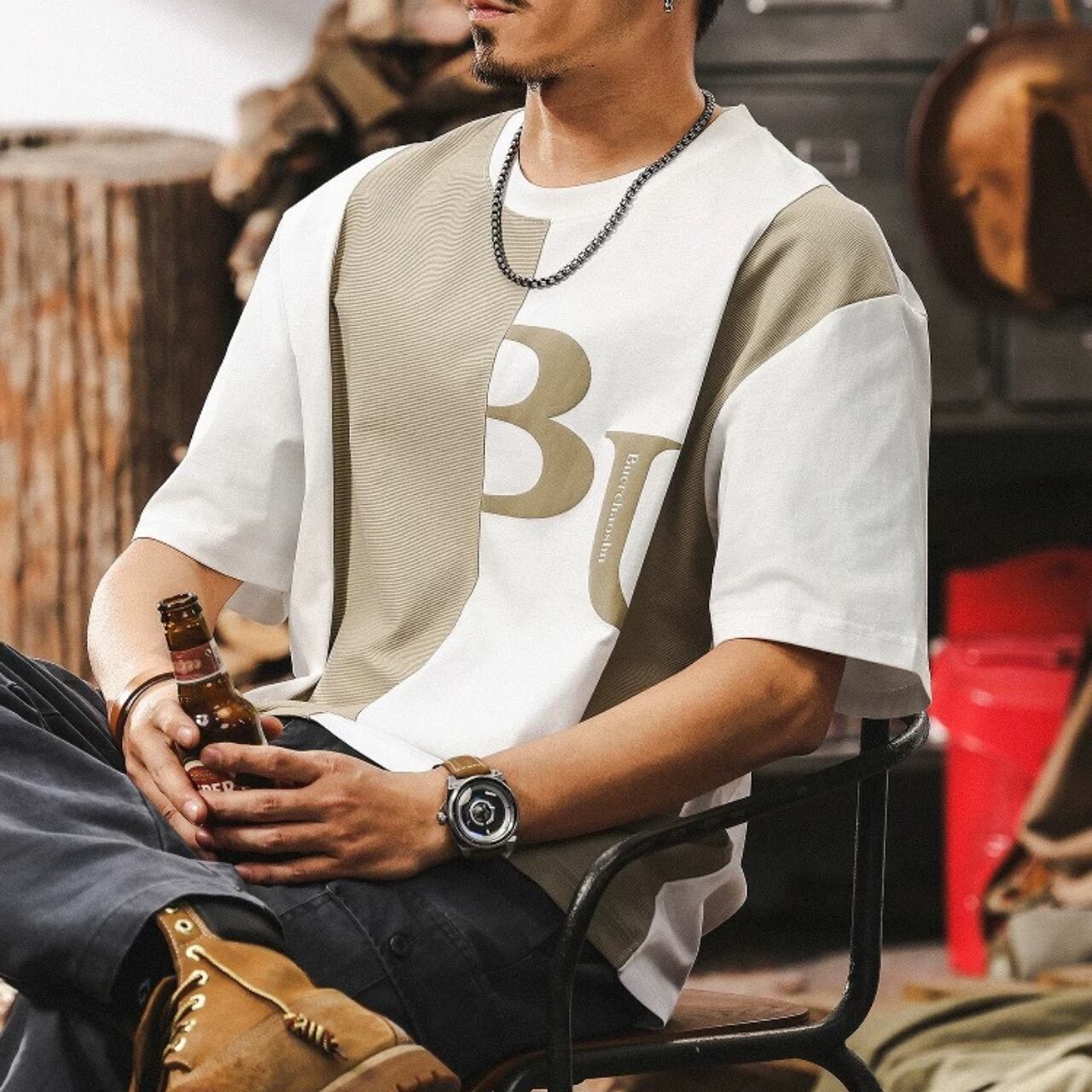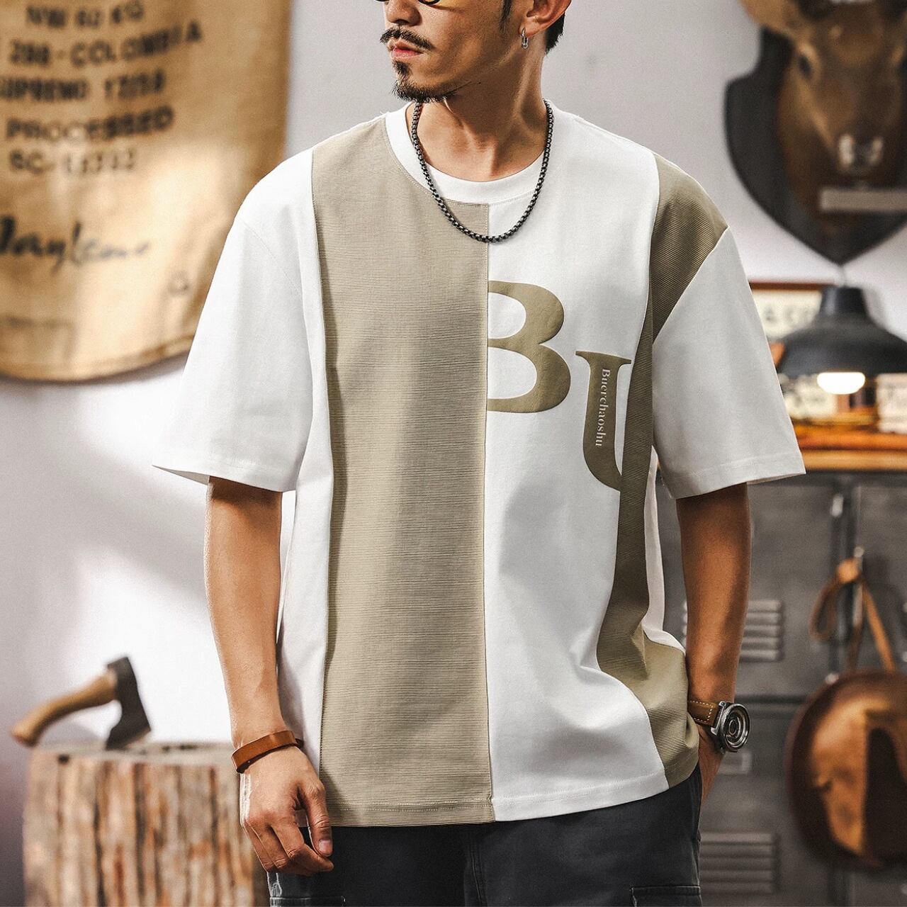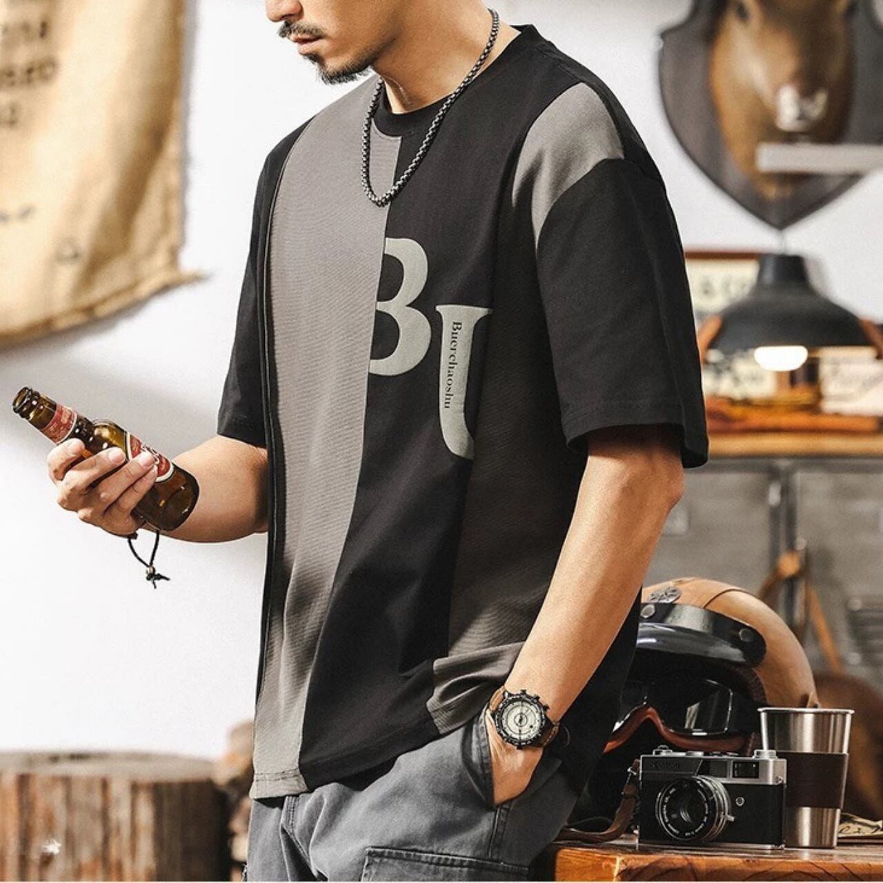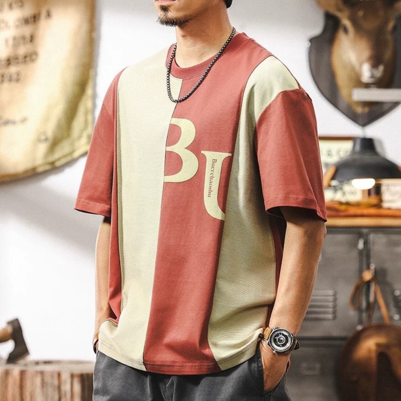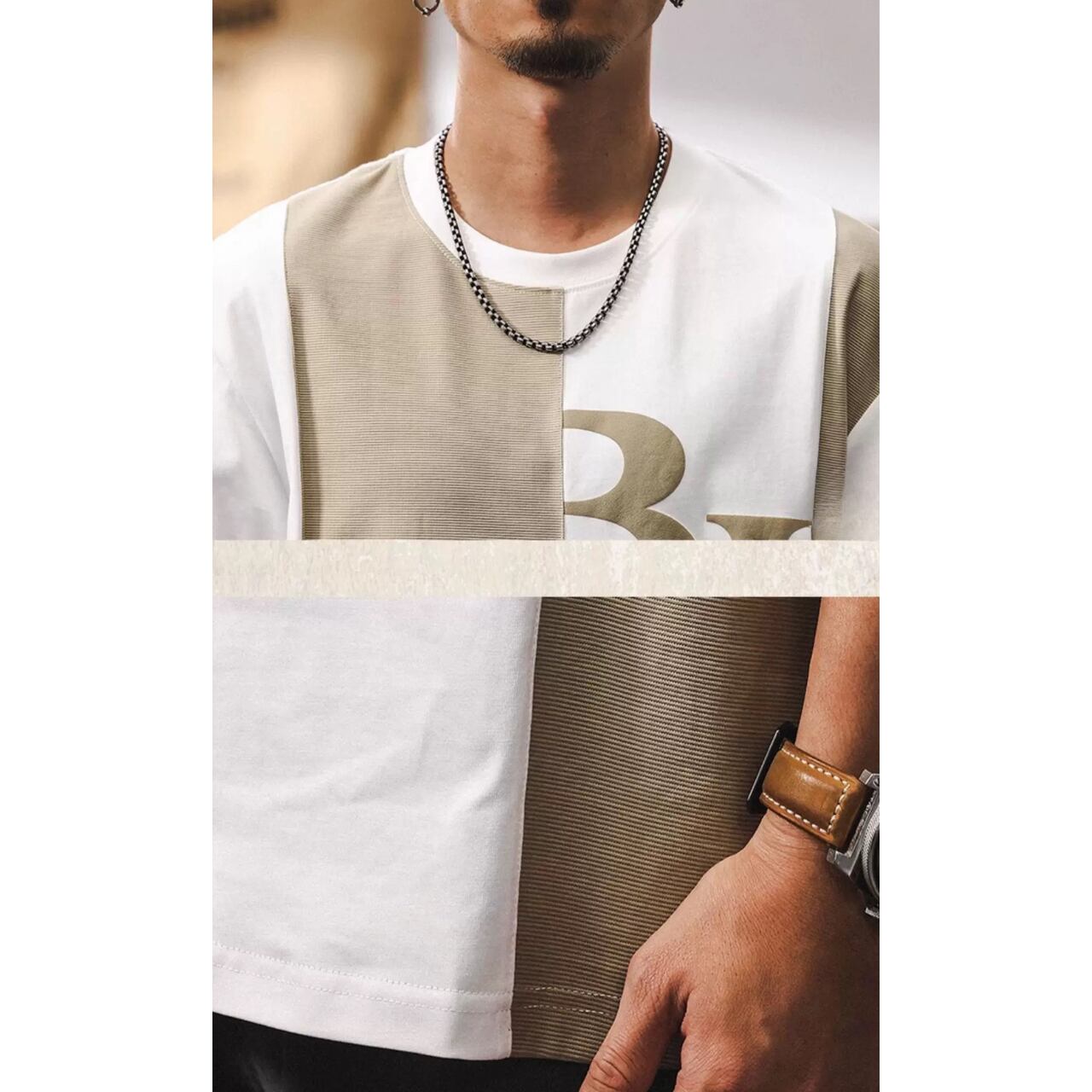 ビッグシルエット パネルデザイン ロゴプリントTシャツ 00408