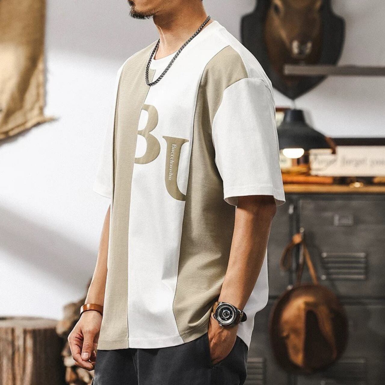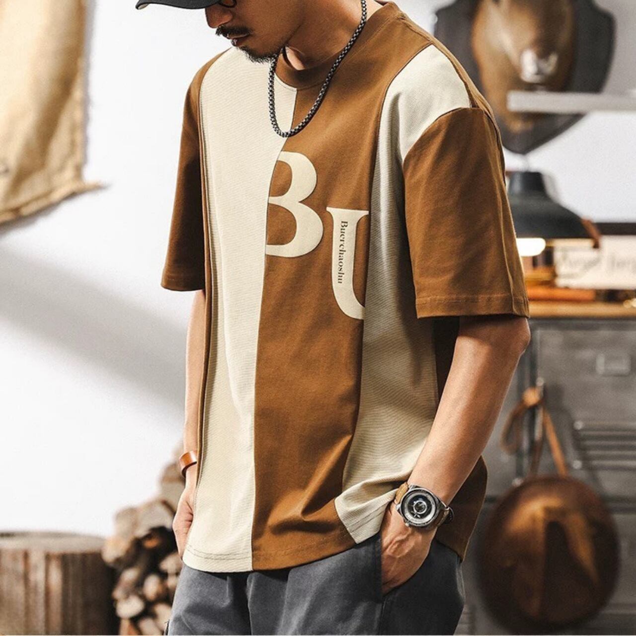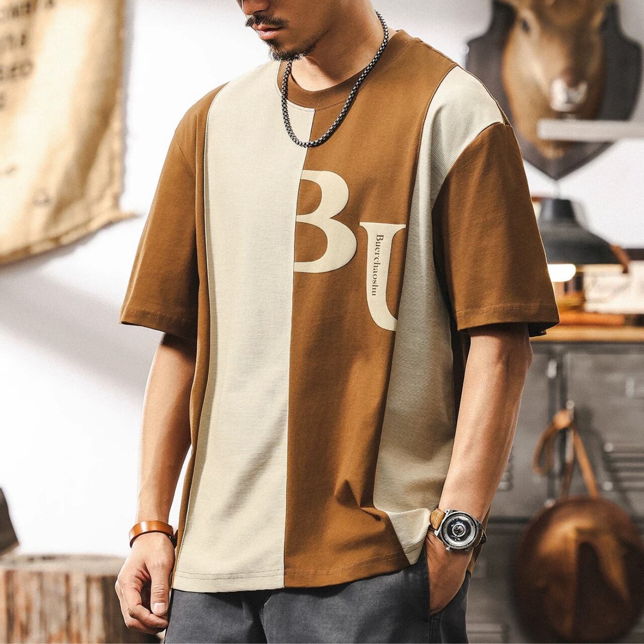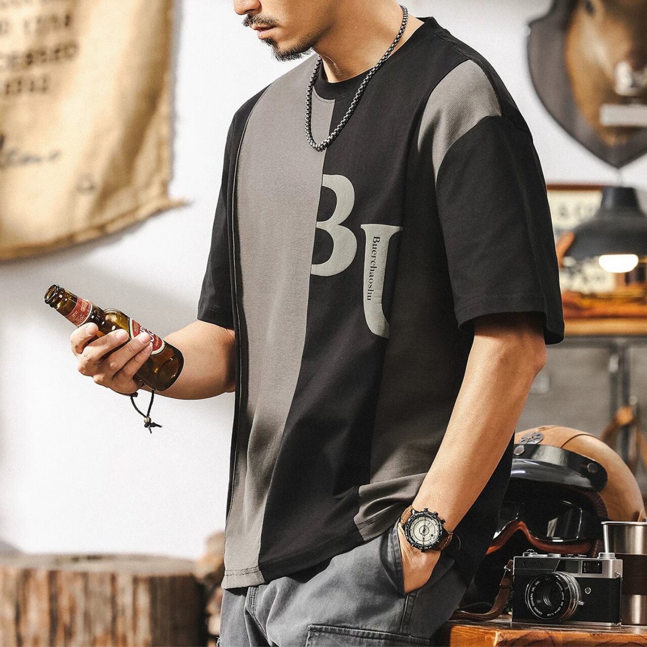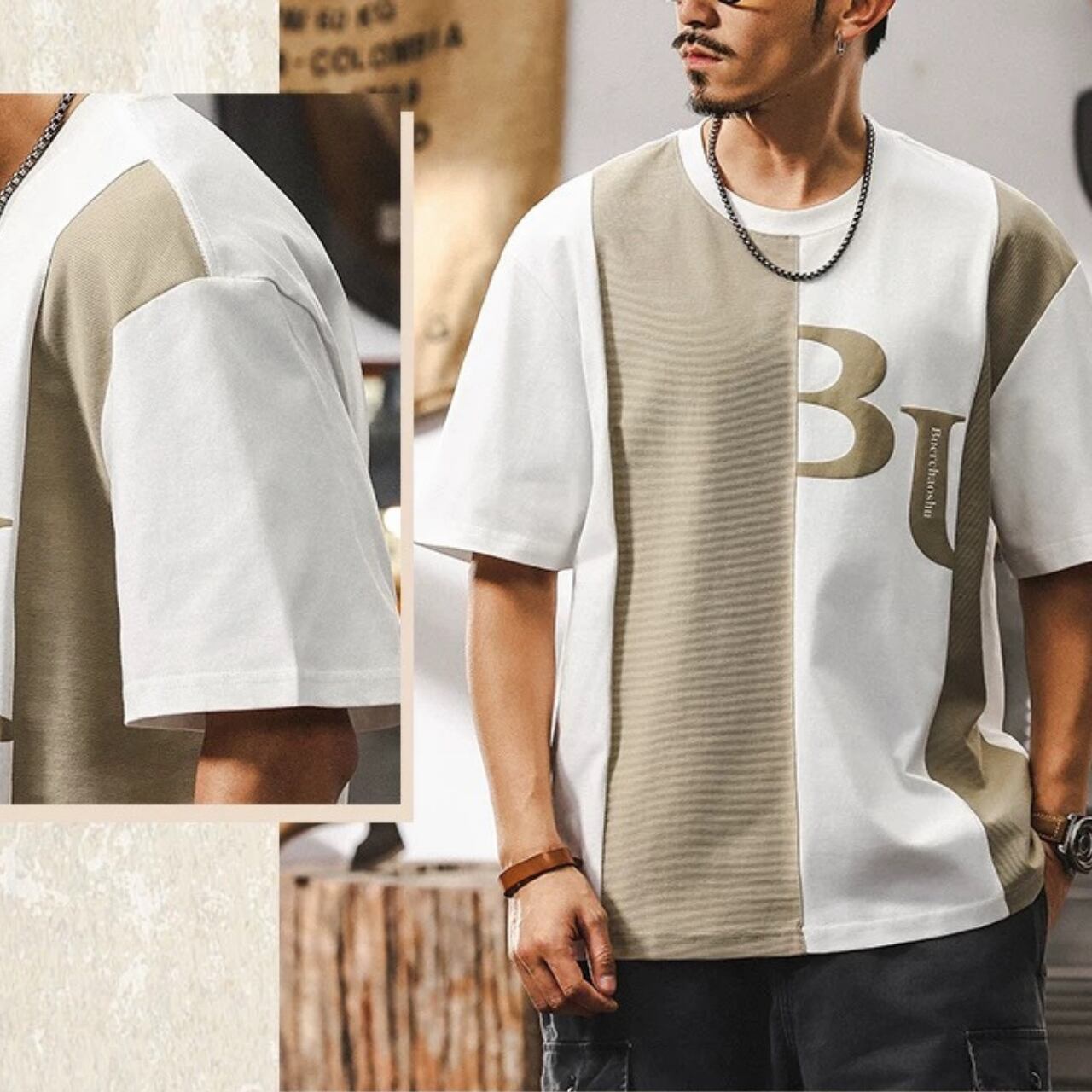 ビッグシルエット パネルデザイン ロゴプリントTシャツ 00408