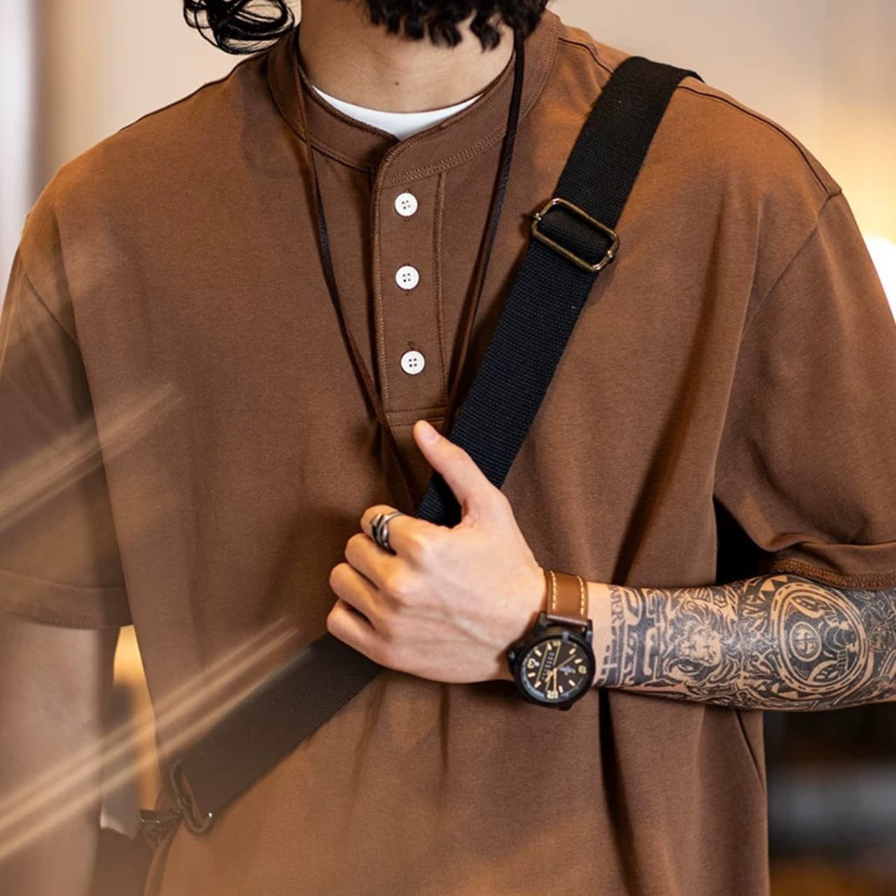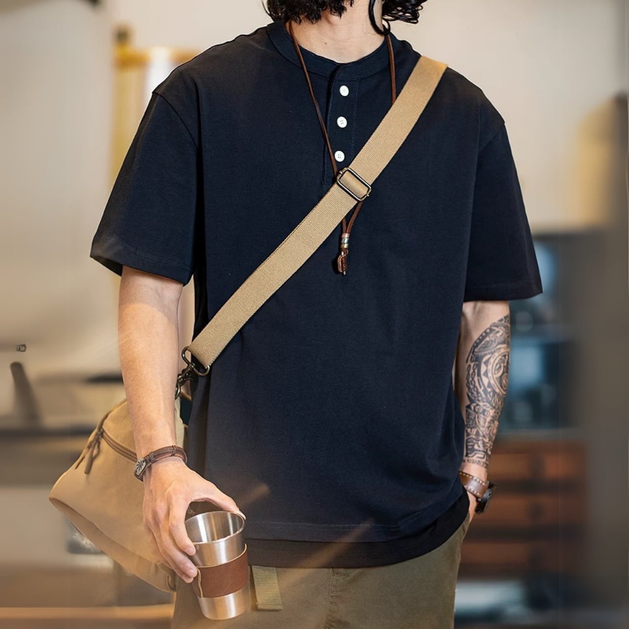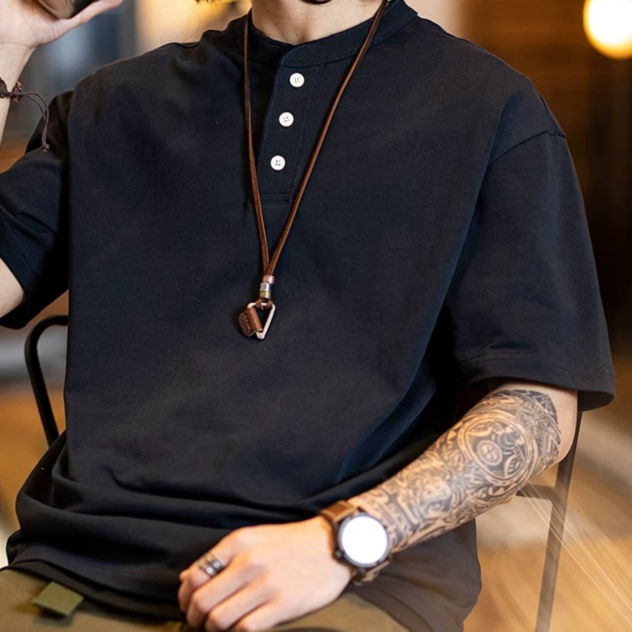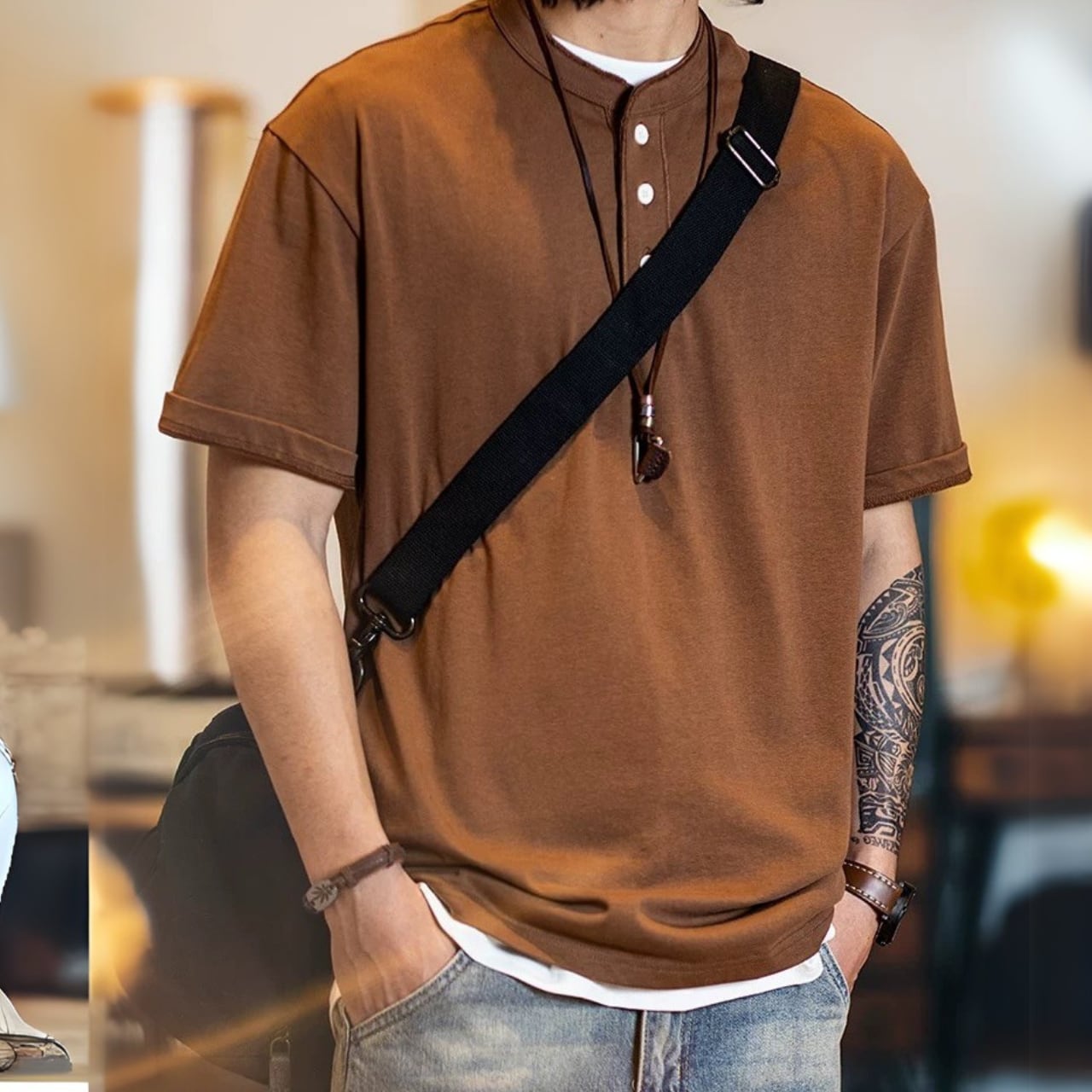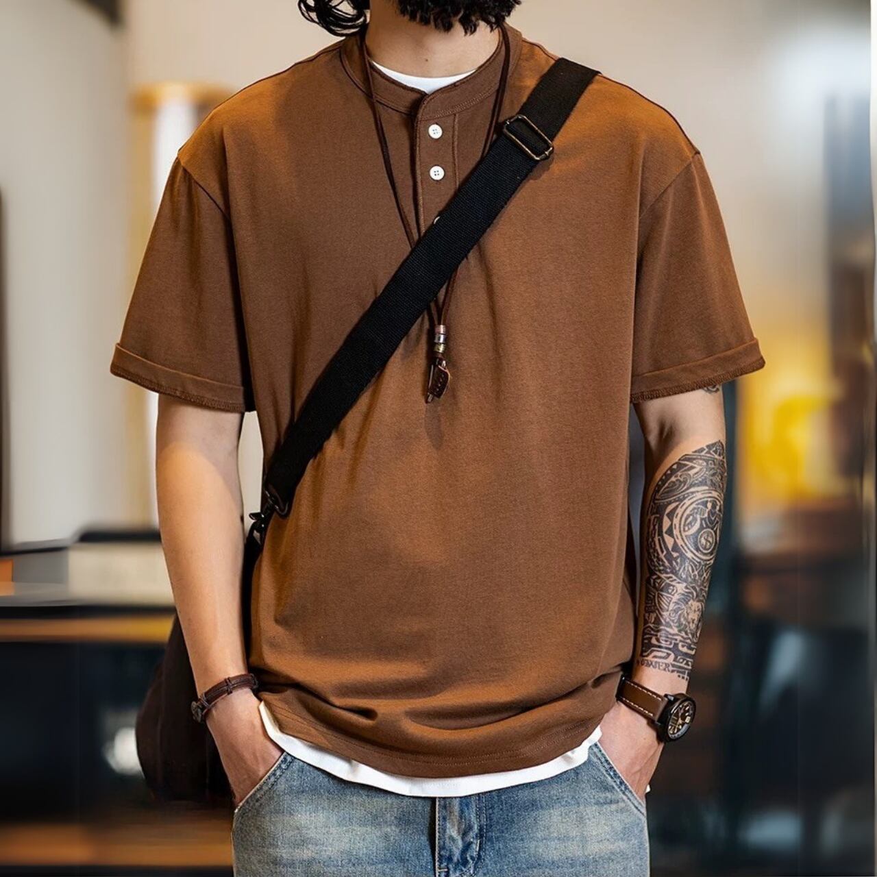 ヘンリーネック バンドカラー レギュラーフィットTシャツ 00410