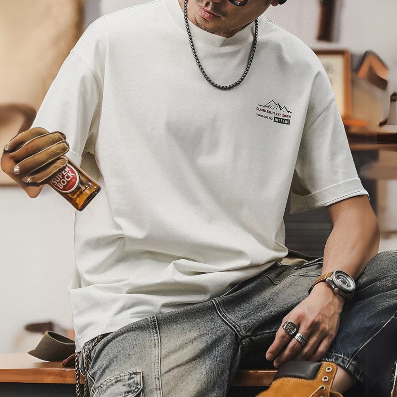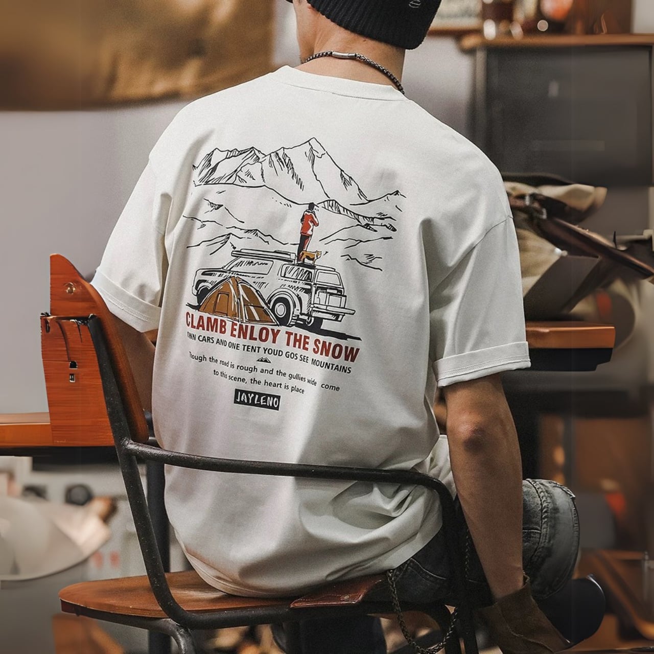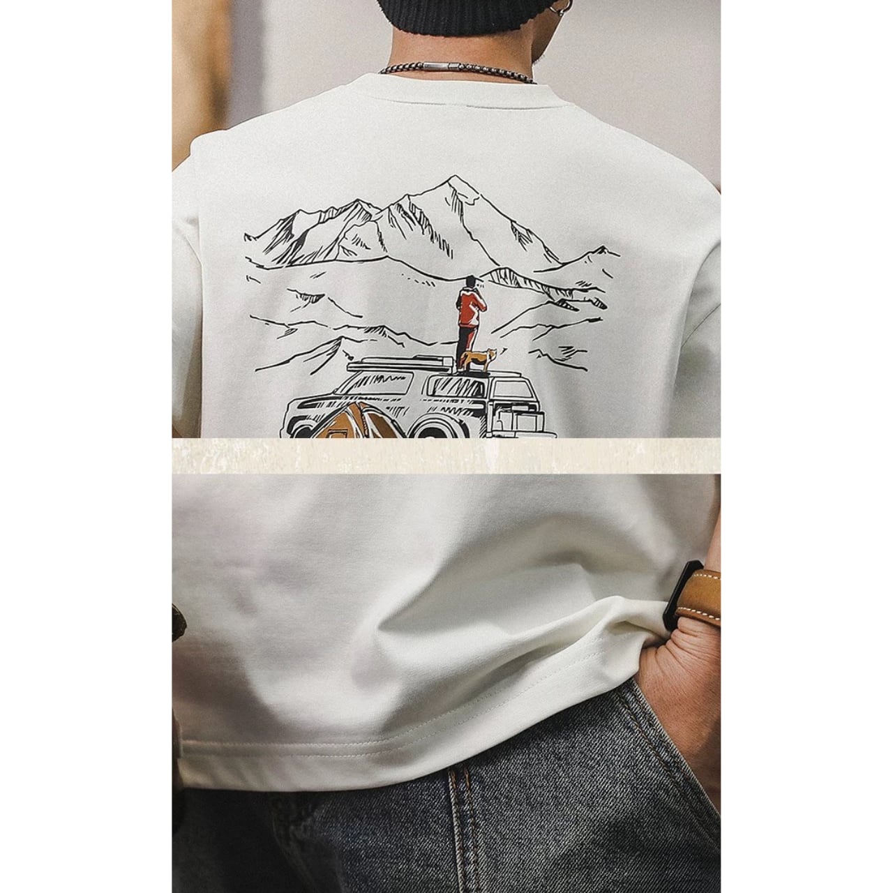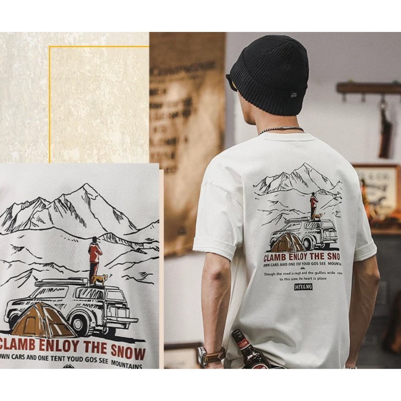 アウトドア バックプリント クルーネック Tシャツ 00505