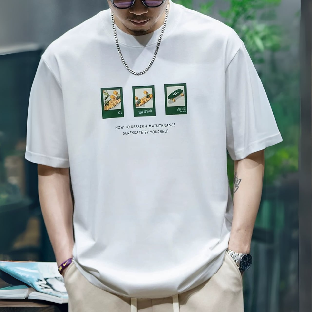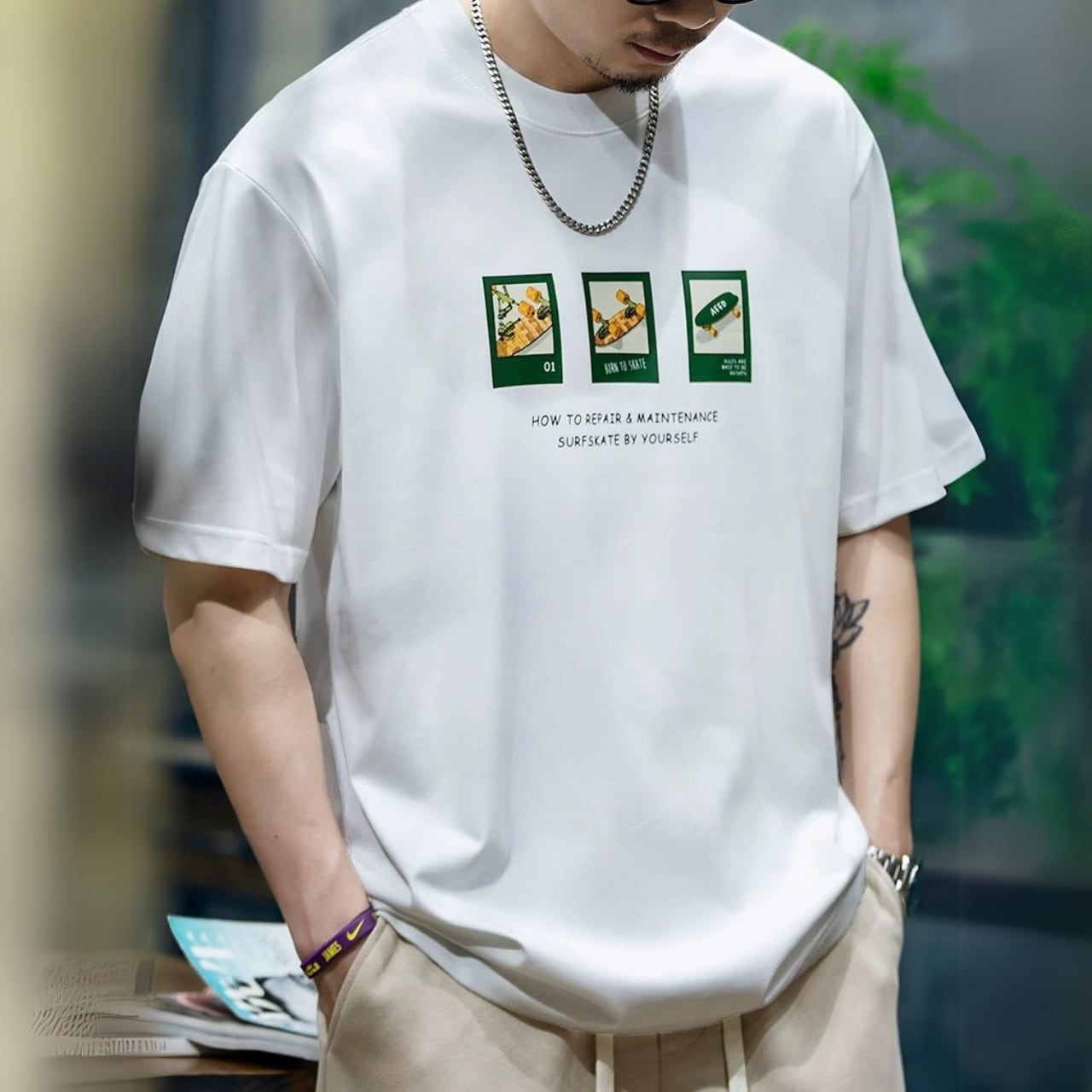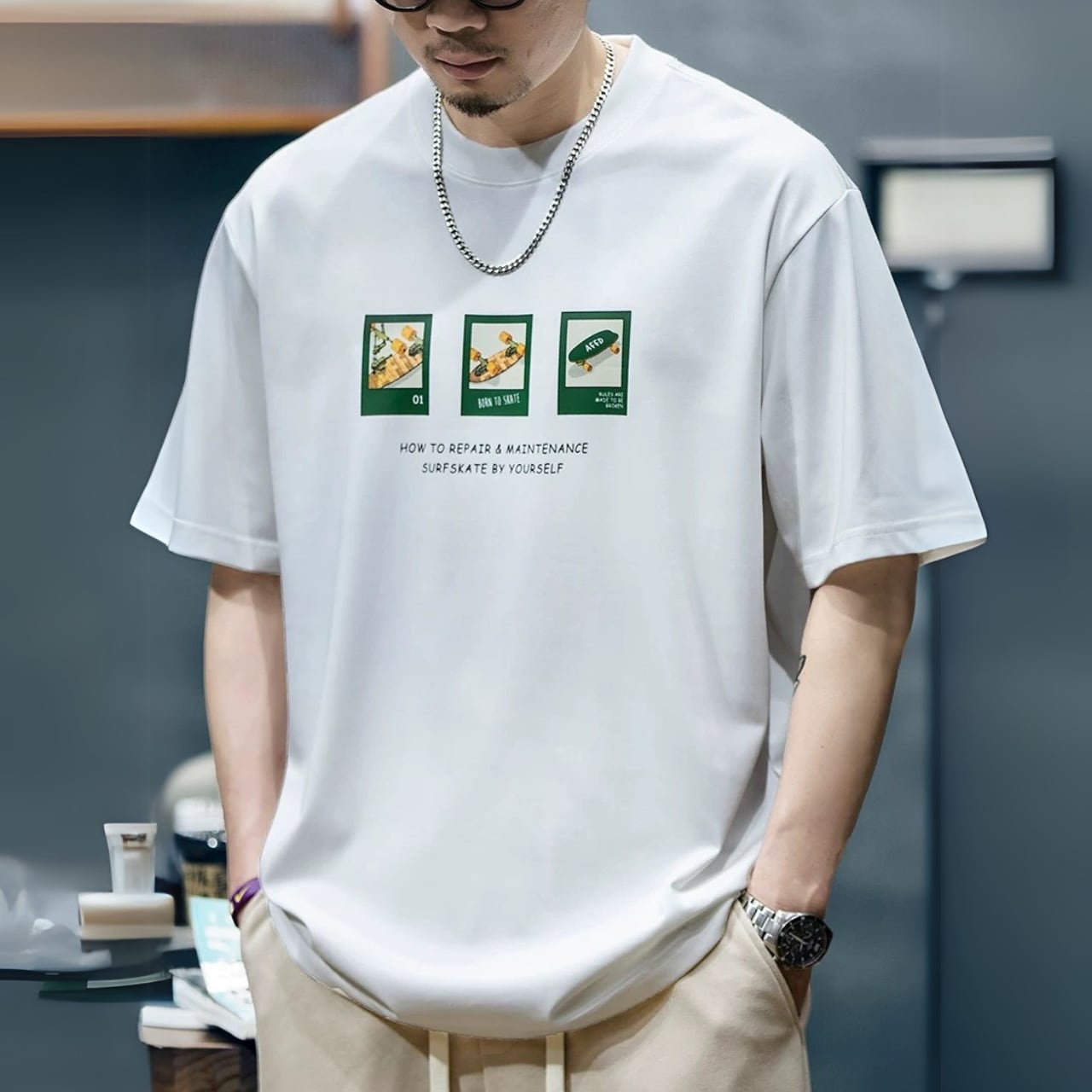 クルーネック ボックスシルエット プリントTシャツ 00490