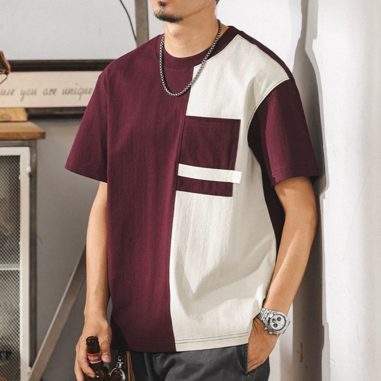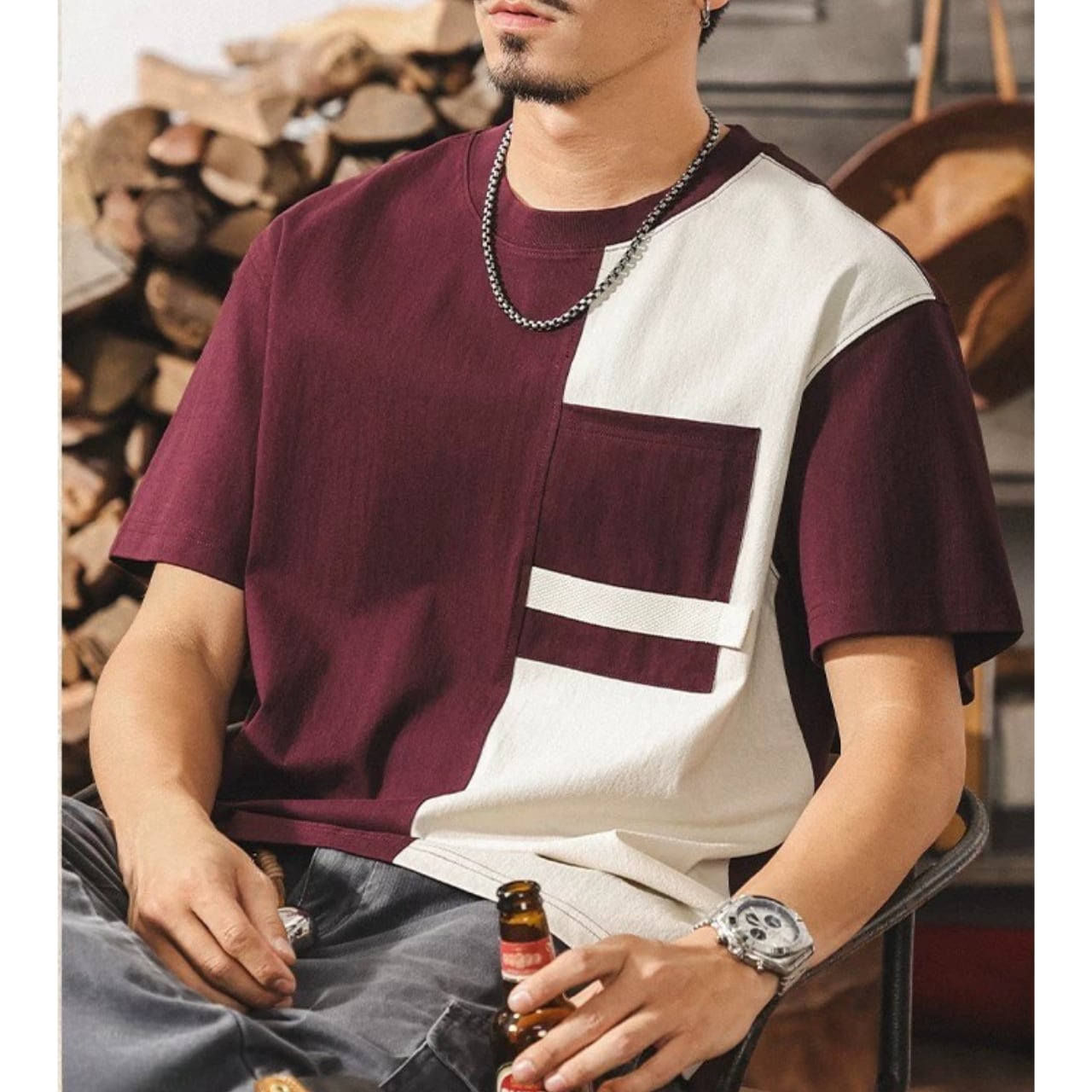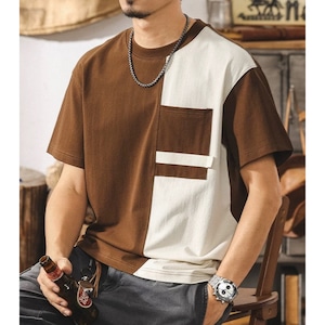 バイカラー パッチポケット付き クルーネックTシャツ 00528