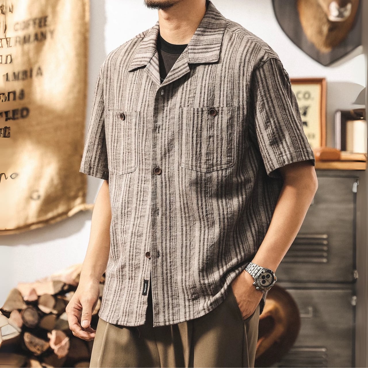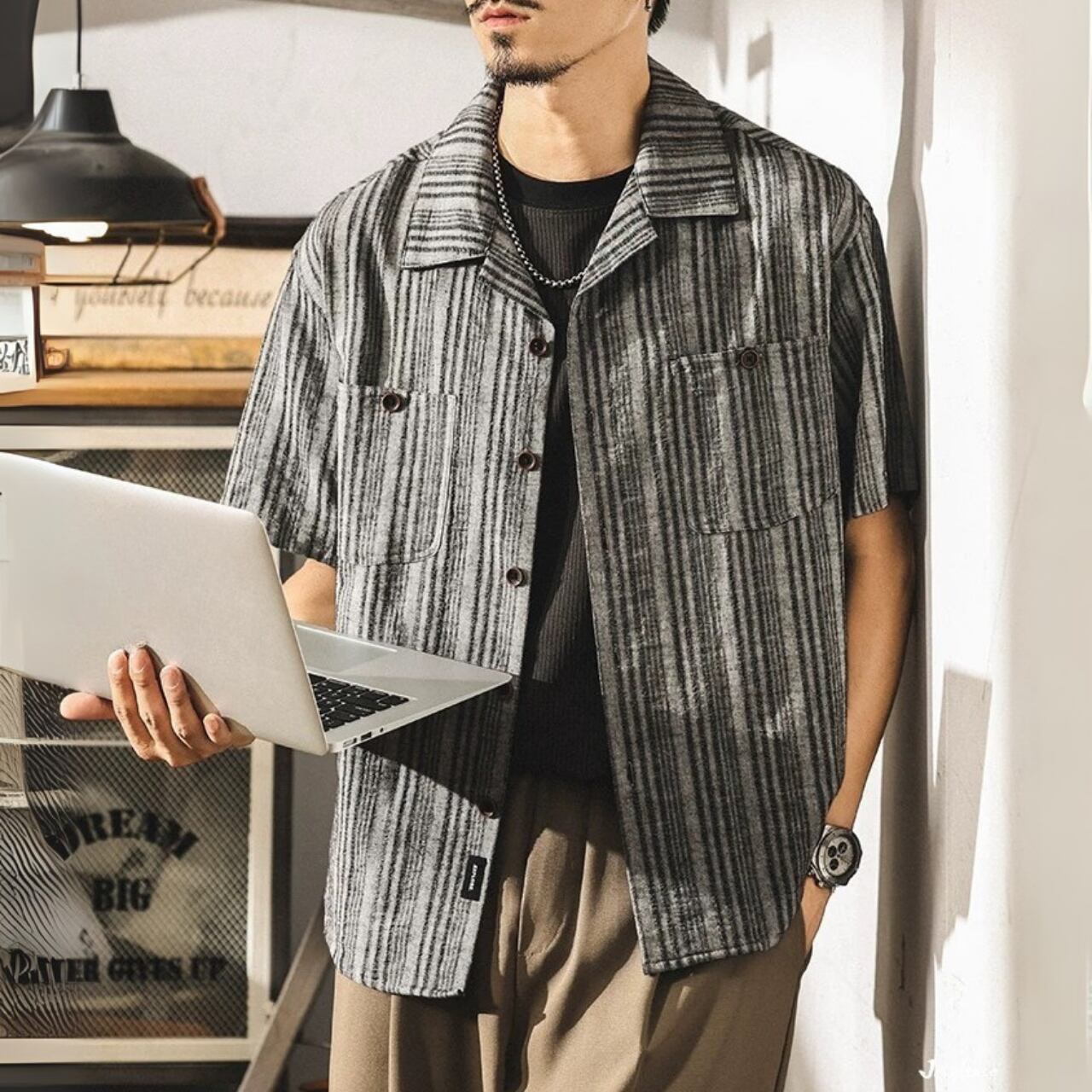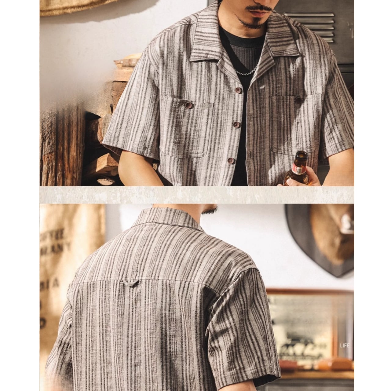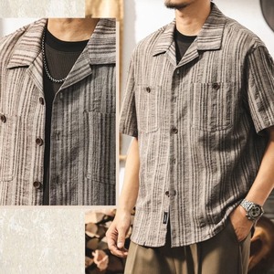 ストライプ柄 ショートスリーブ ボタンダウンシャツ 00536
