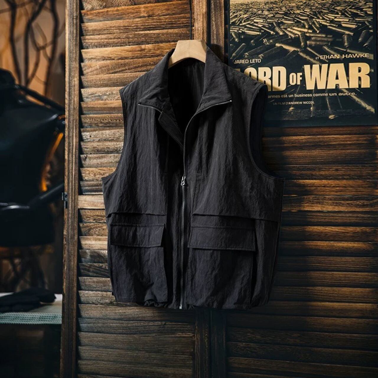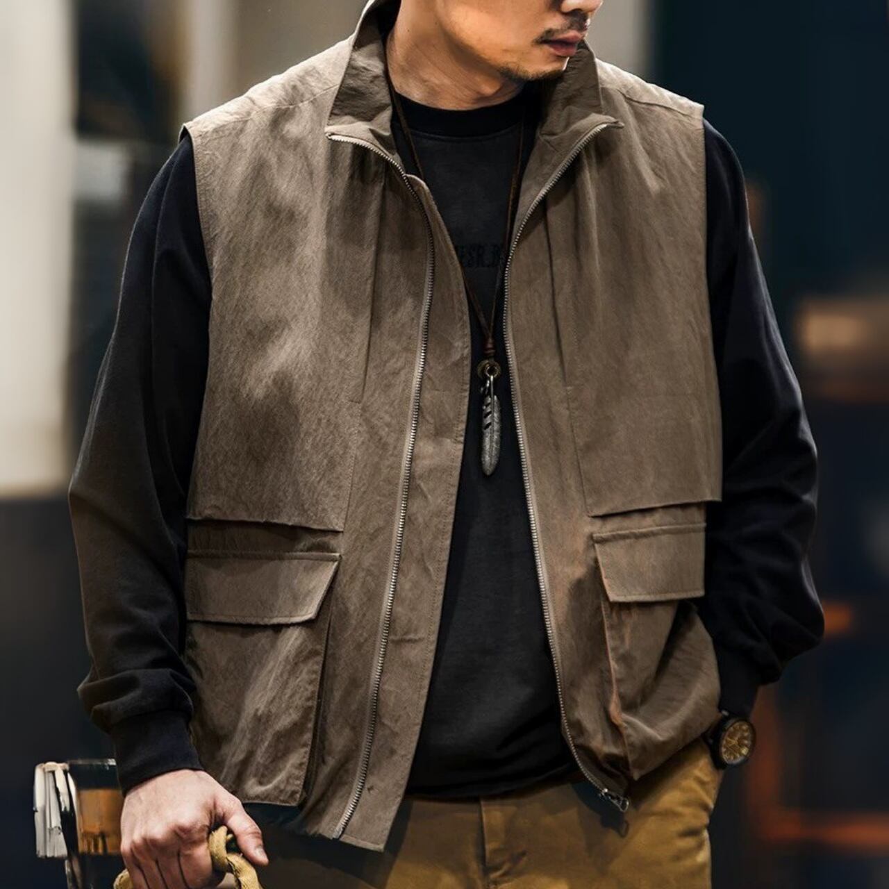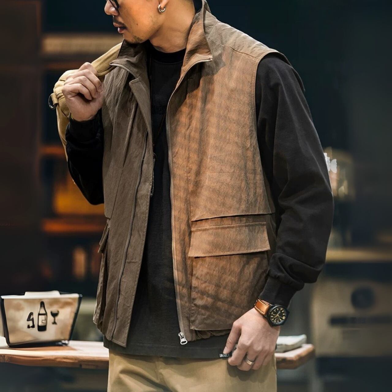 フラップポケット付き スタンドカラー ジップアップベスト 00534