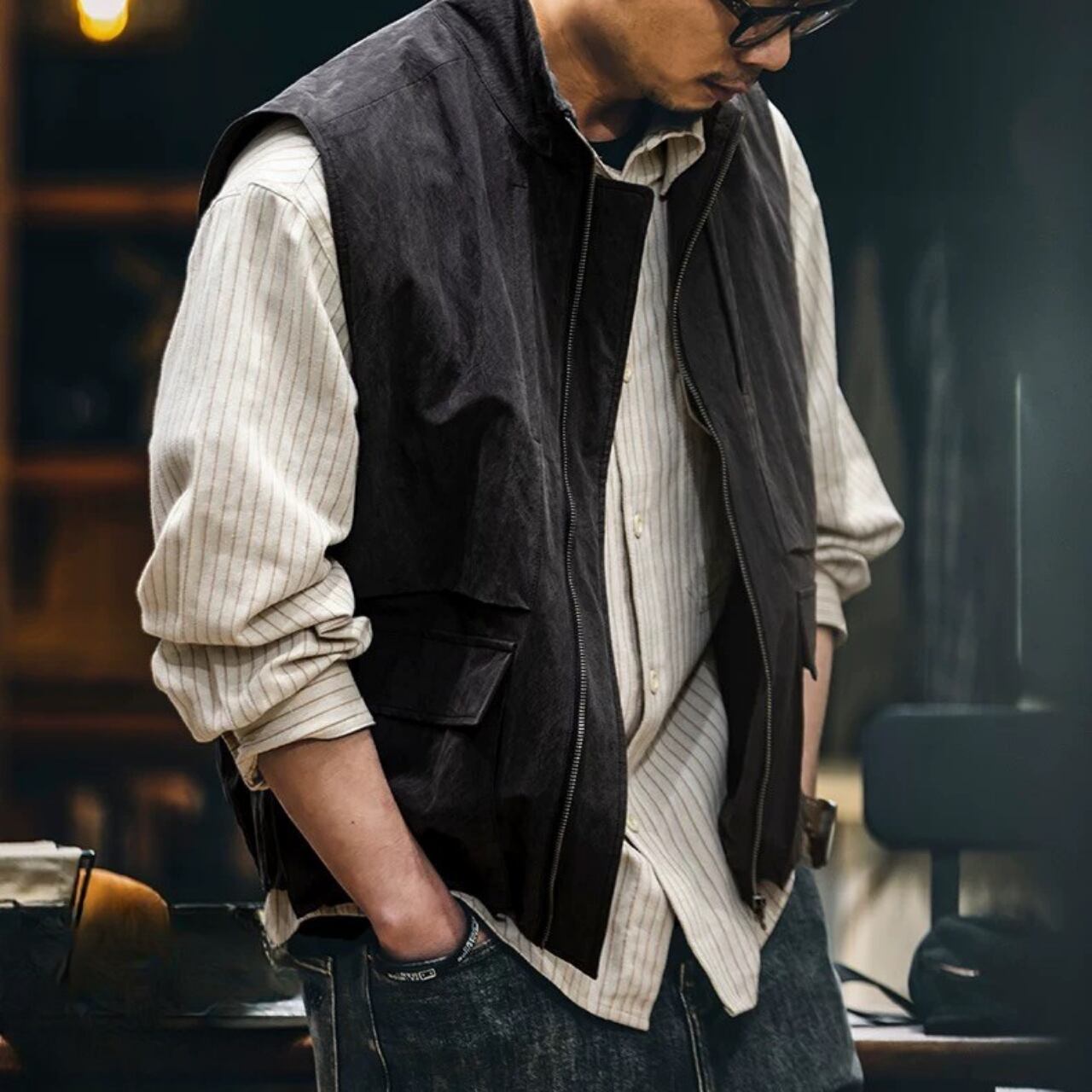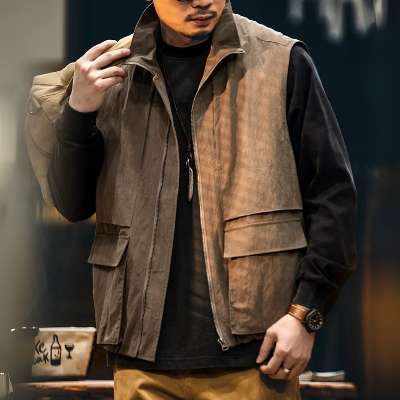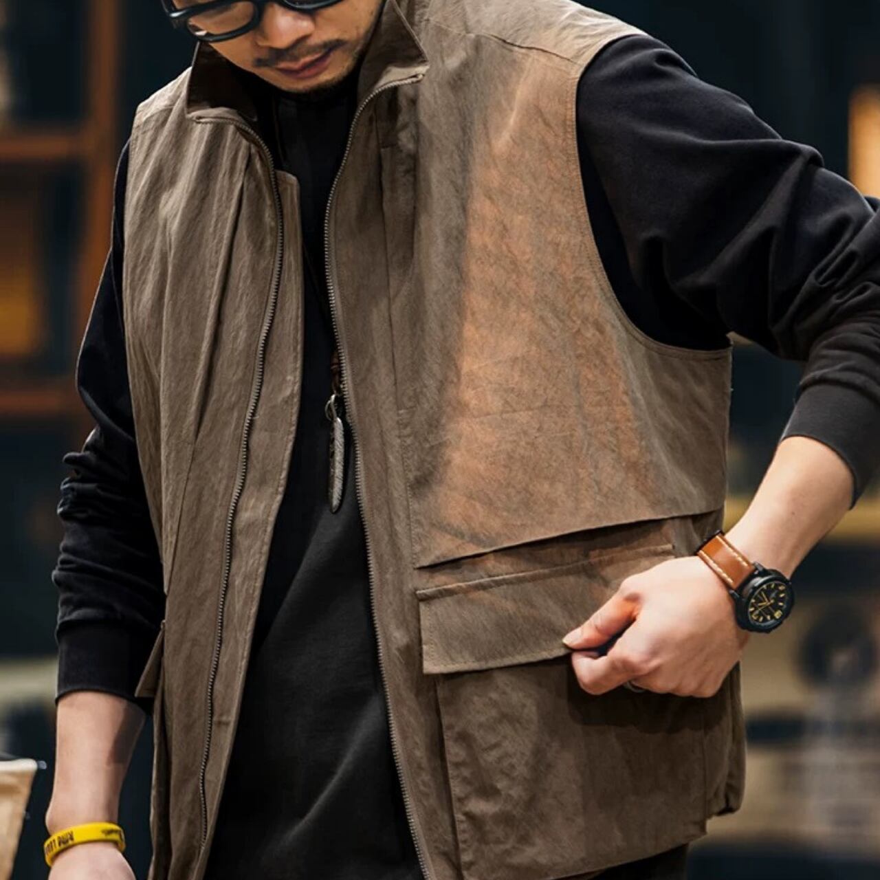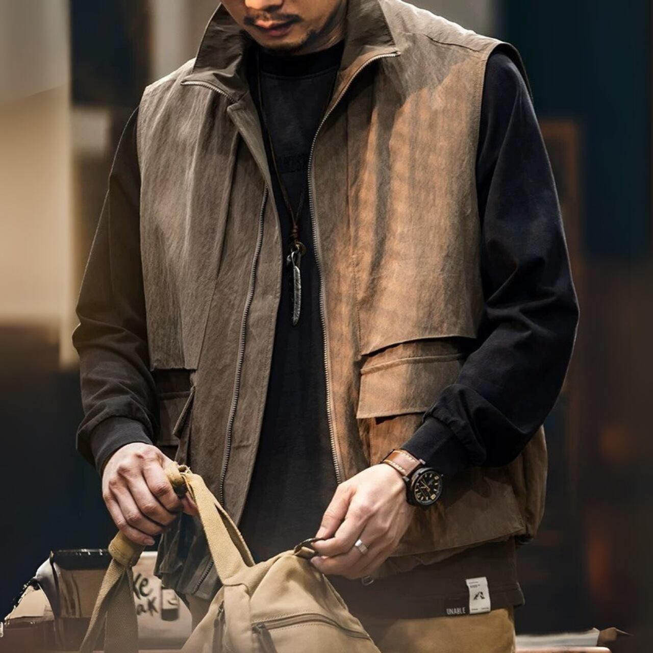フラップポケット付き スタンドカラー ジップアップベスト 00534