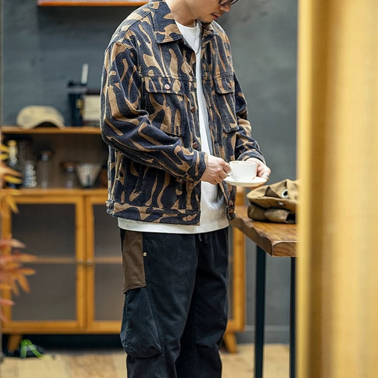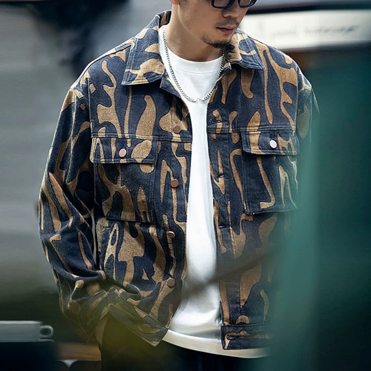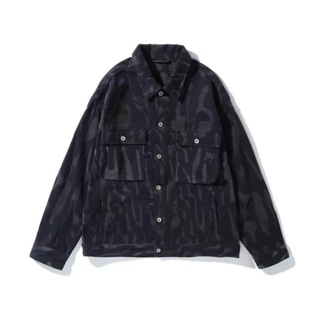 ボタン付き 胸ポケット付き 抽象柄デニムジャケット 00549