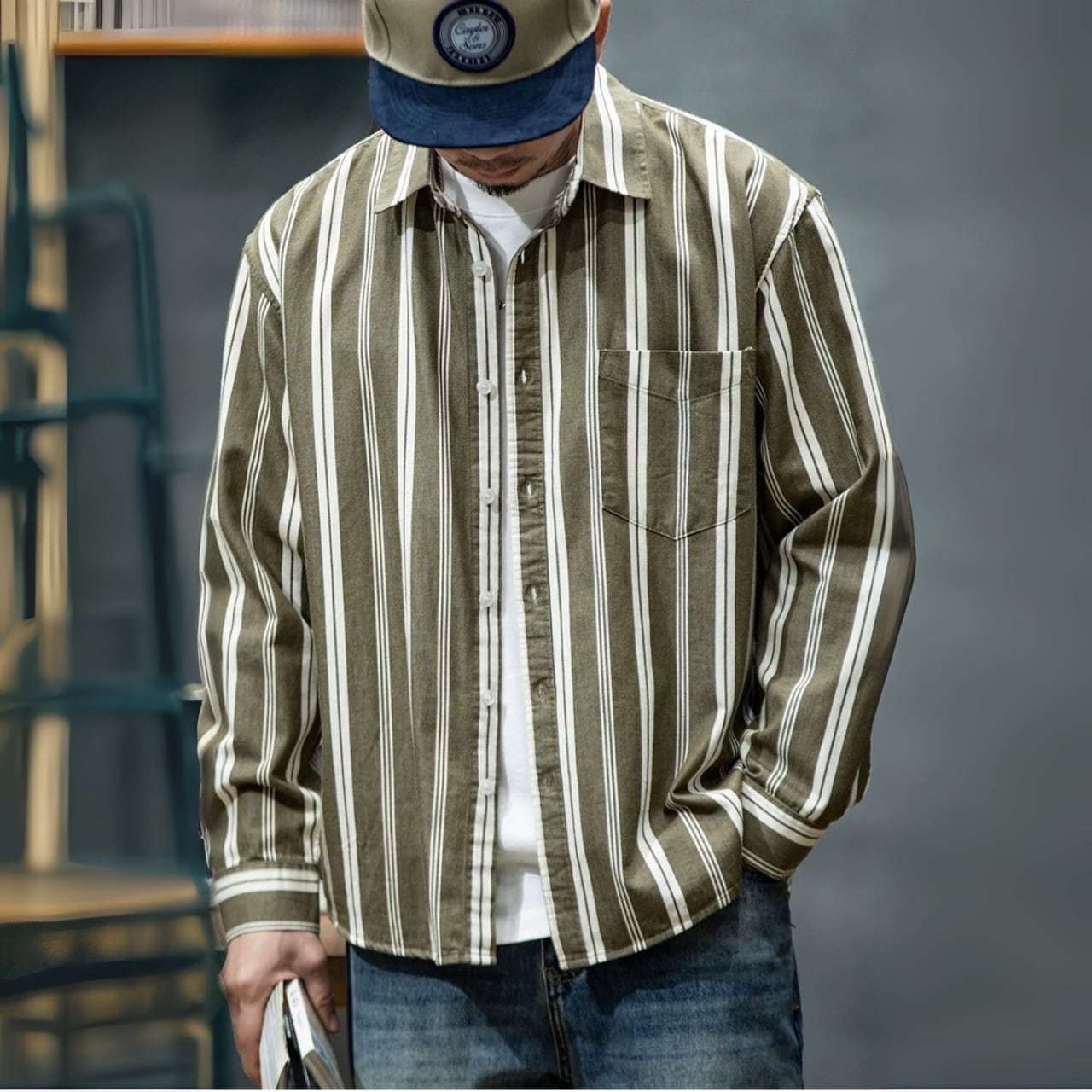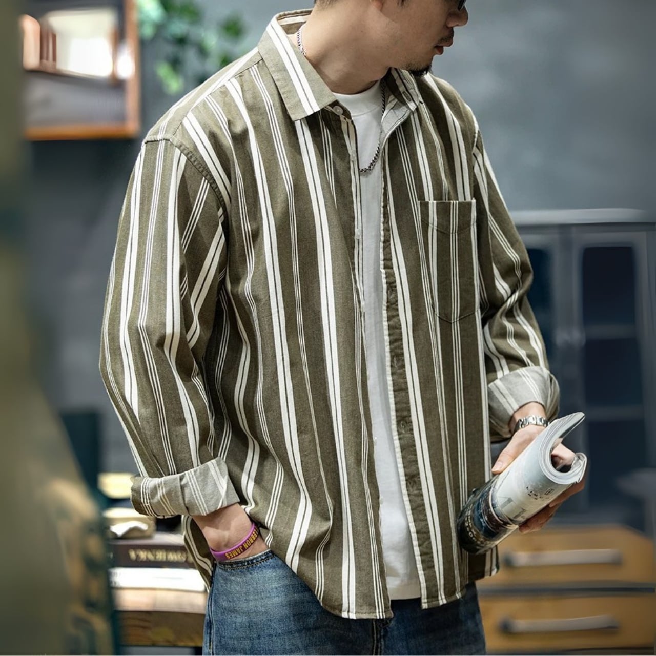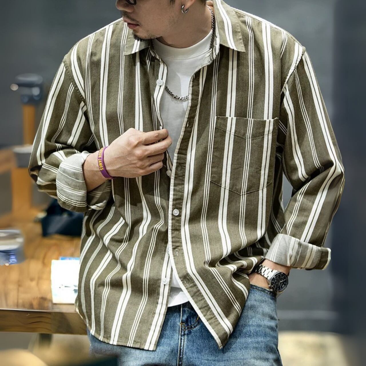 バーティカルストライプ ストレートシルエット ボタンダウンシャツ 00542