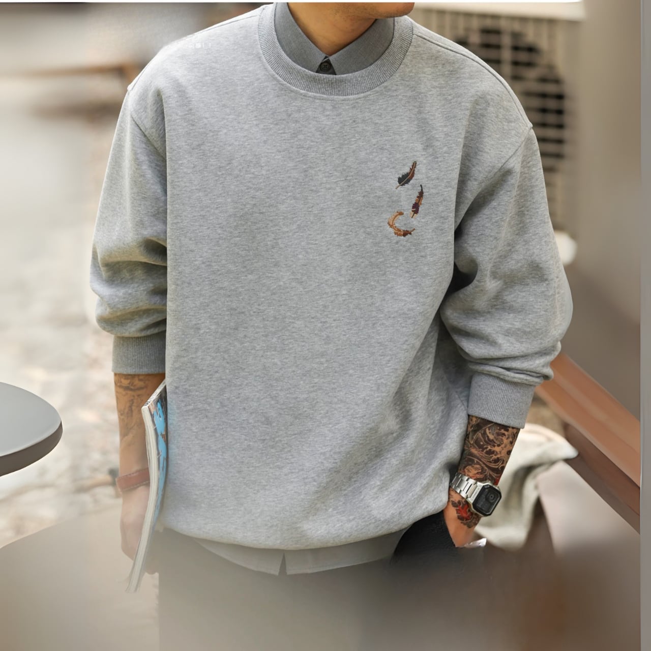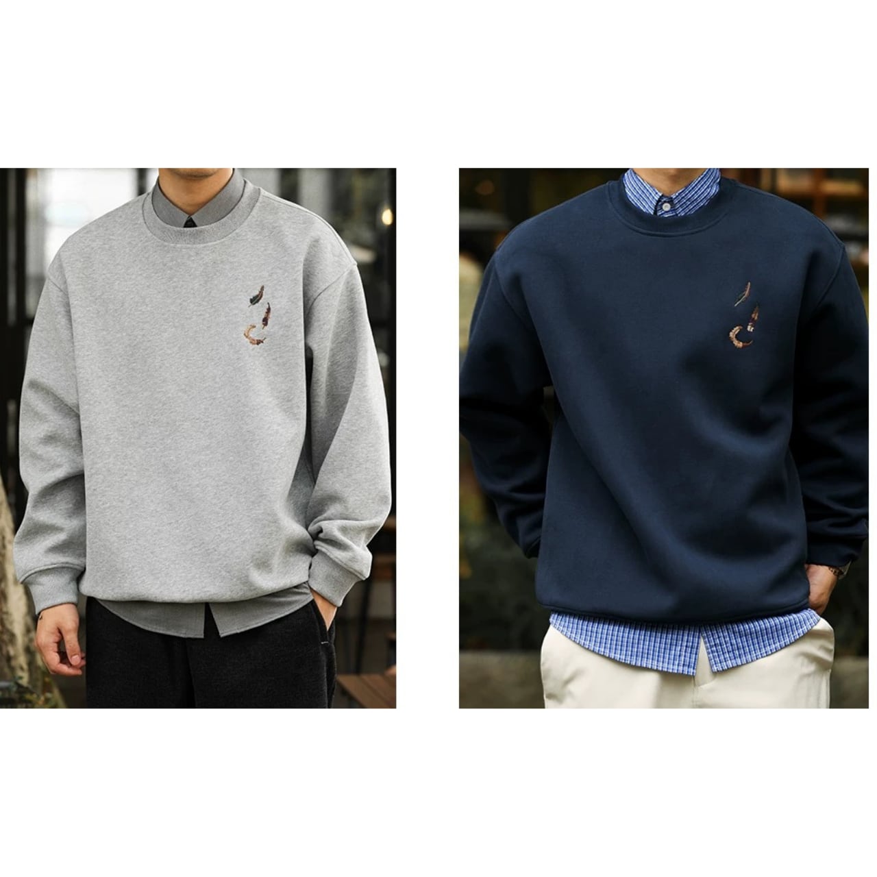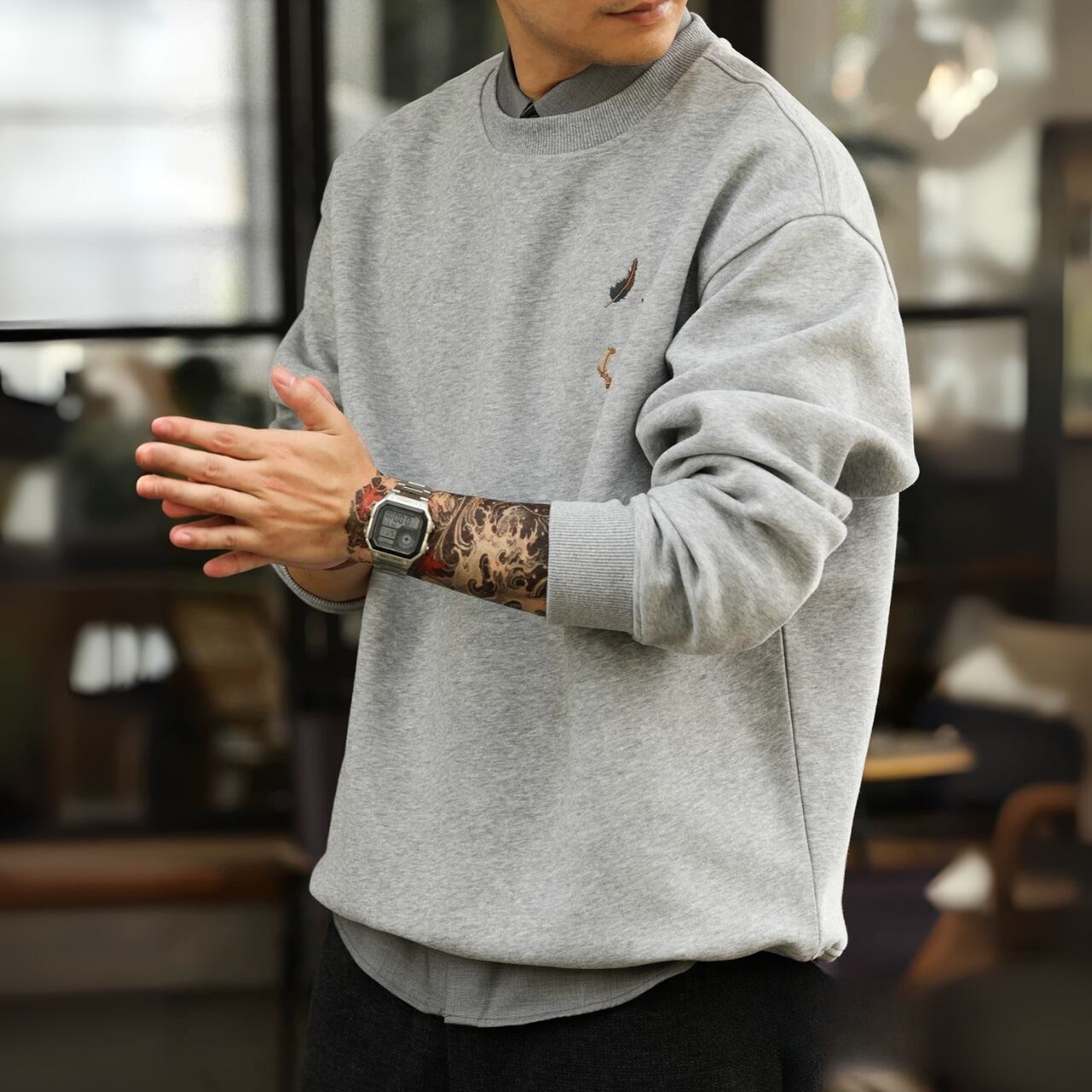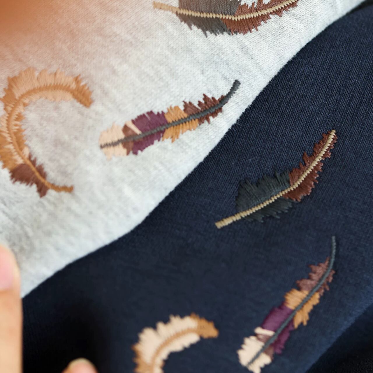 フェザーモチーフ 刺繍入り クルーネックスウェットシャツ 00554