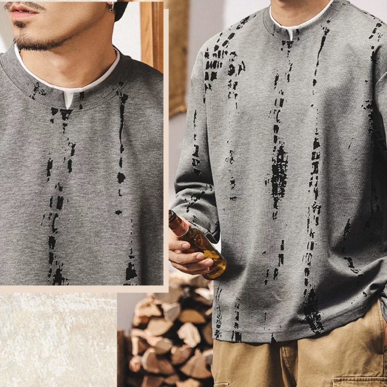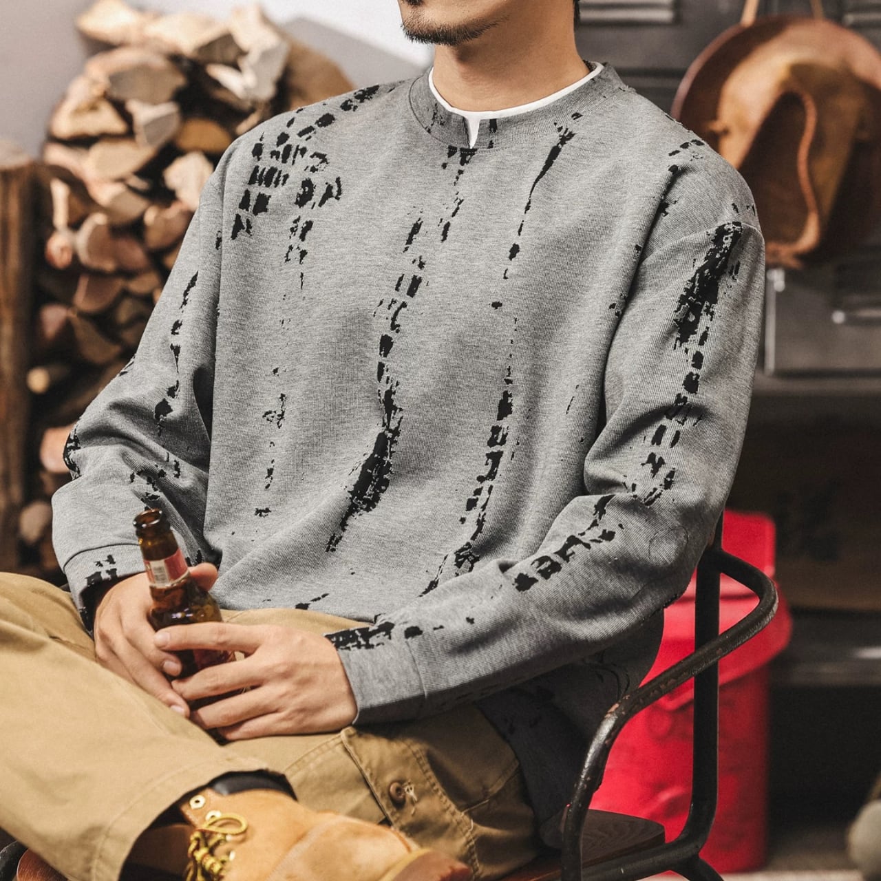 クルーネック プリント スウェットシャツ 00578