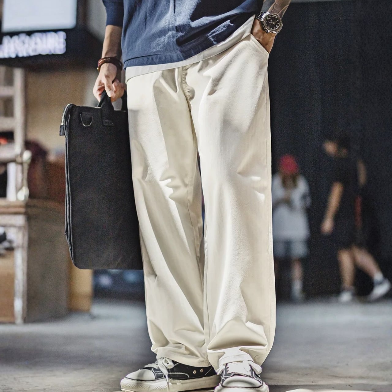 ドローストリング ワイドレッグ ストレート パンツ 00599