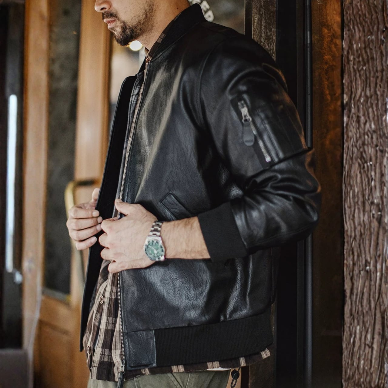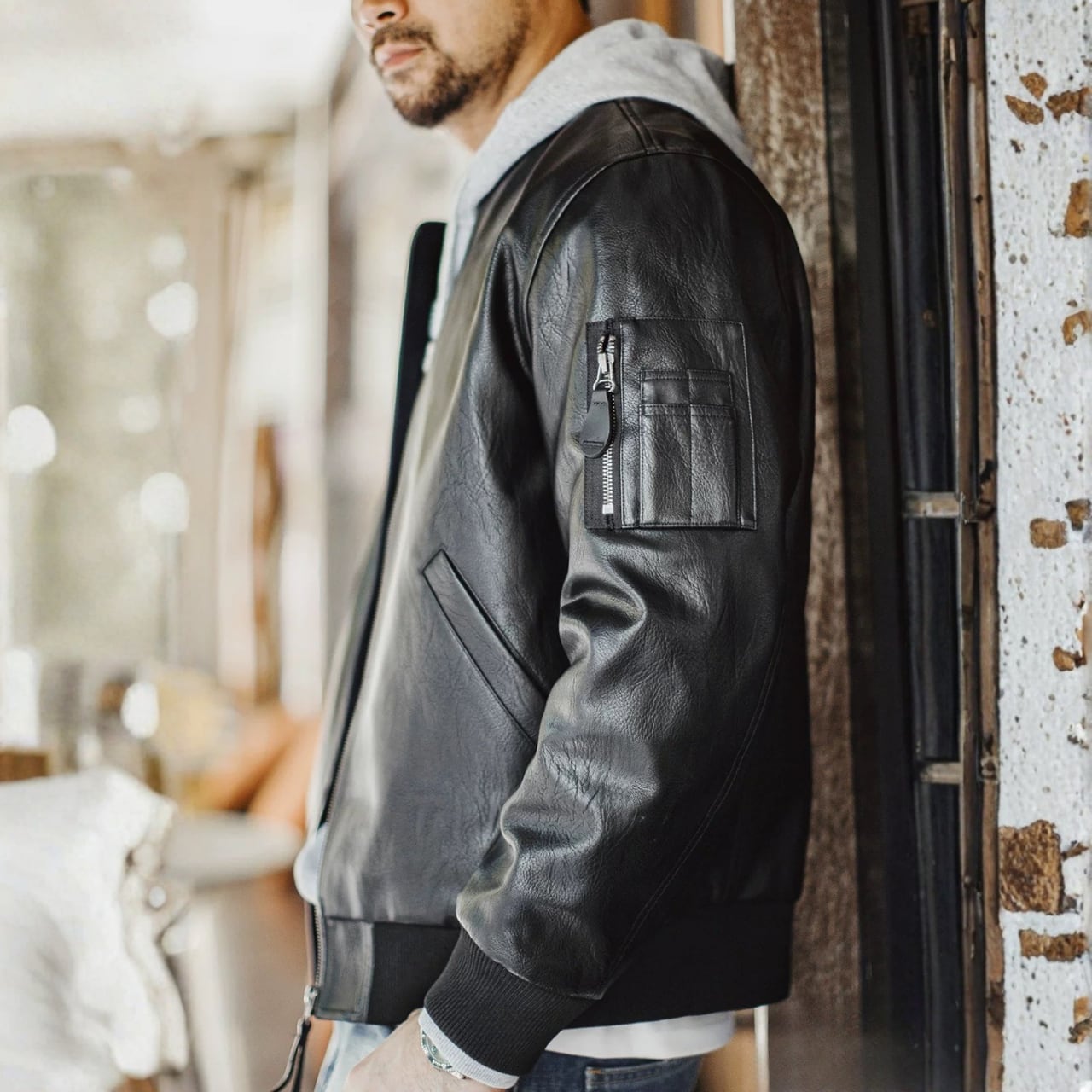 ジップアップ フェイクレザー ブルゾンジャケット 00601