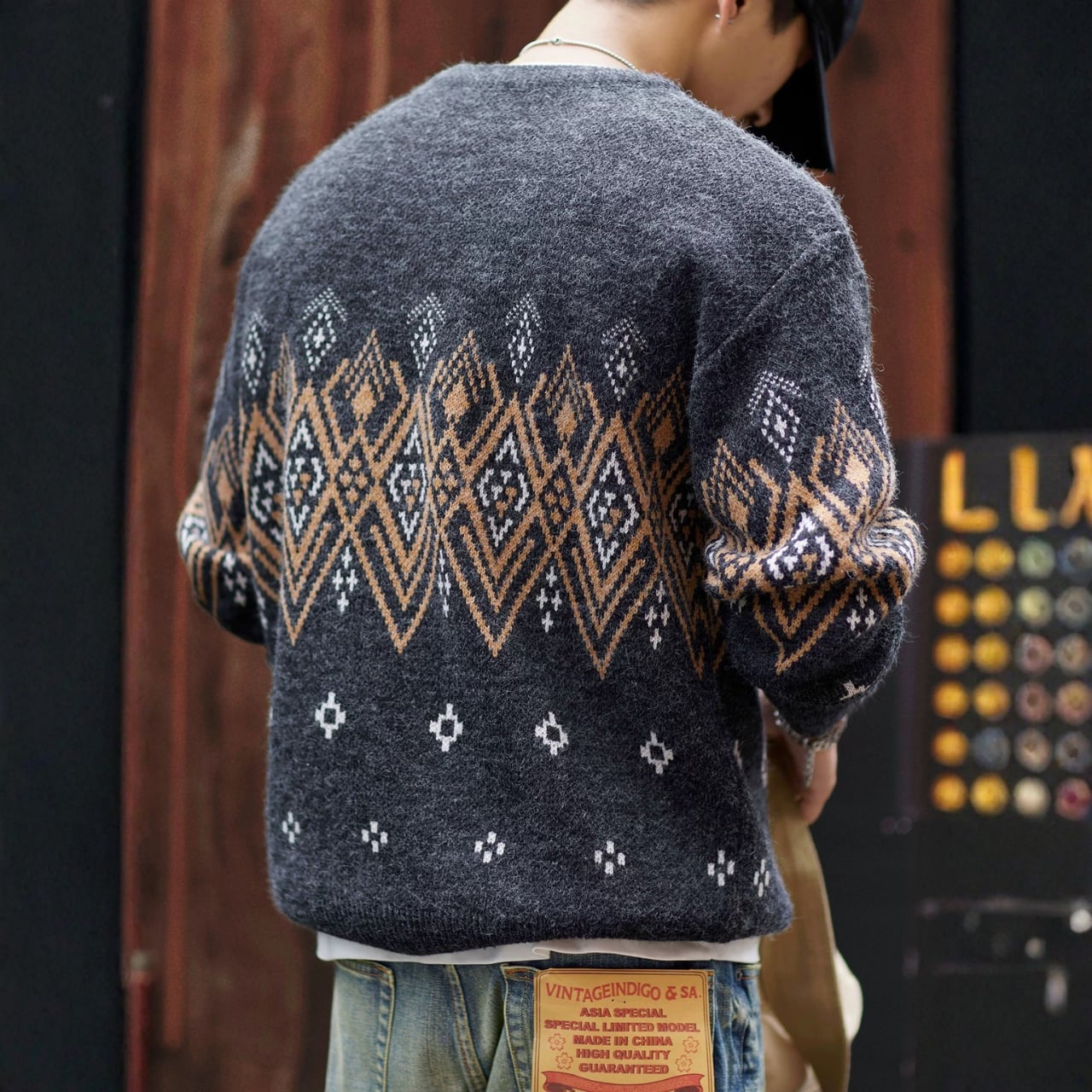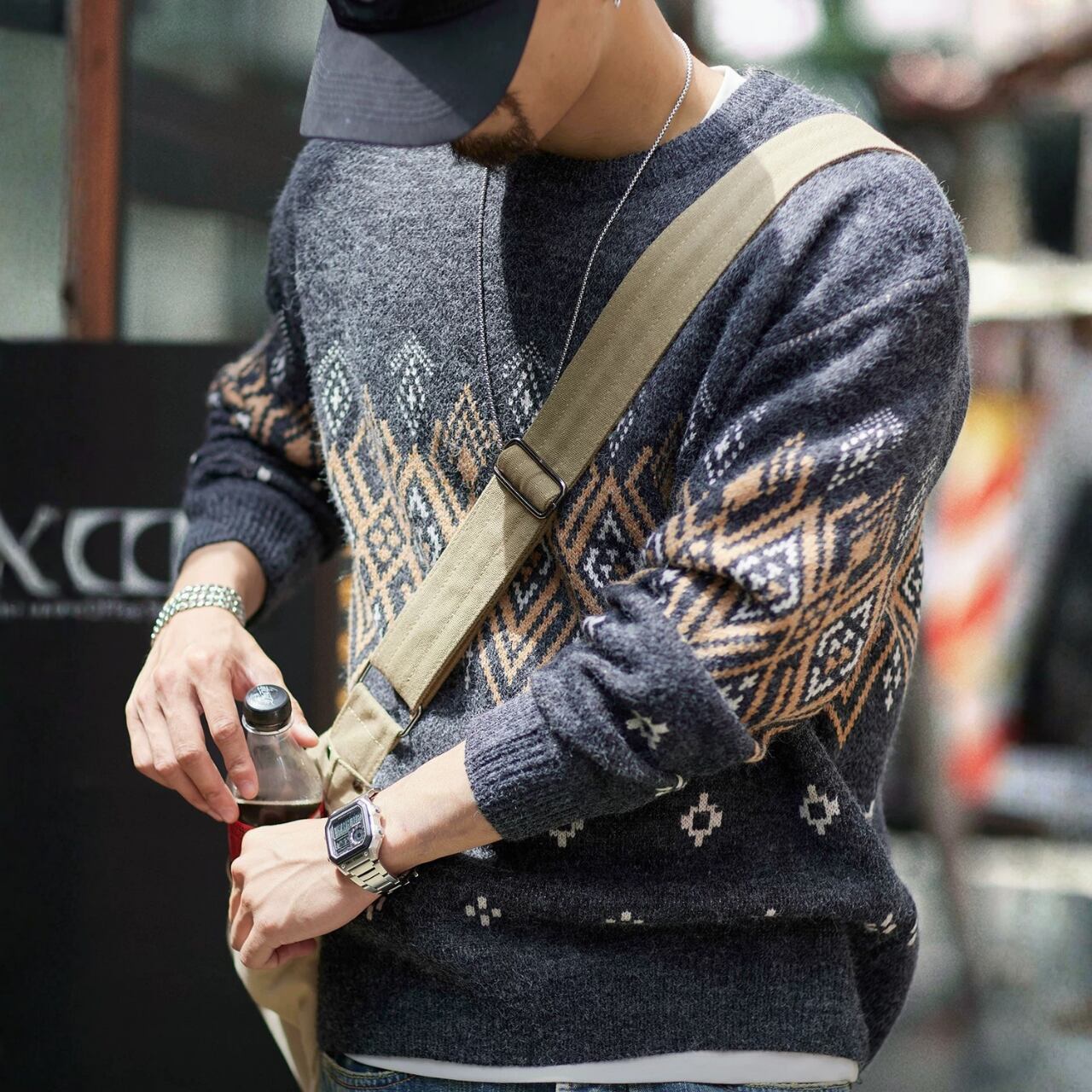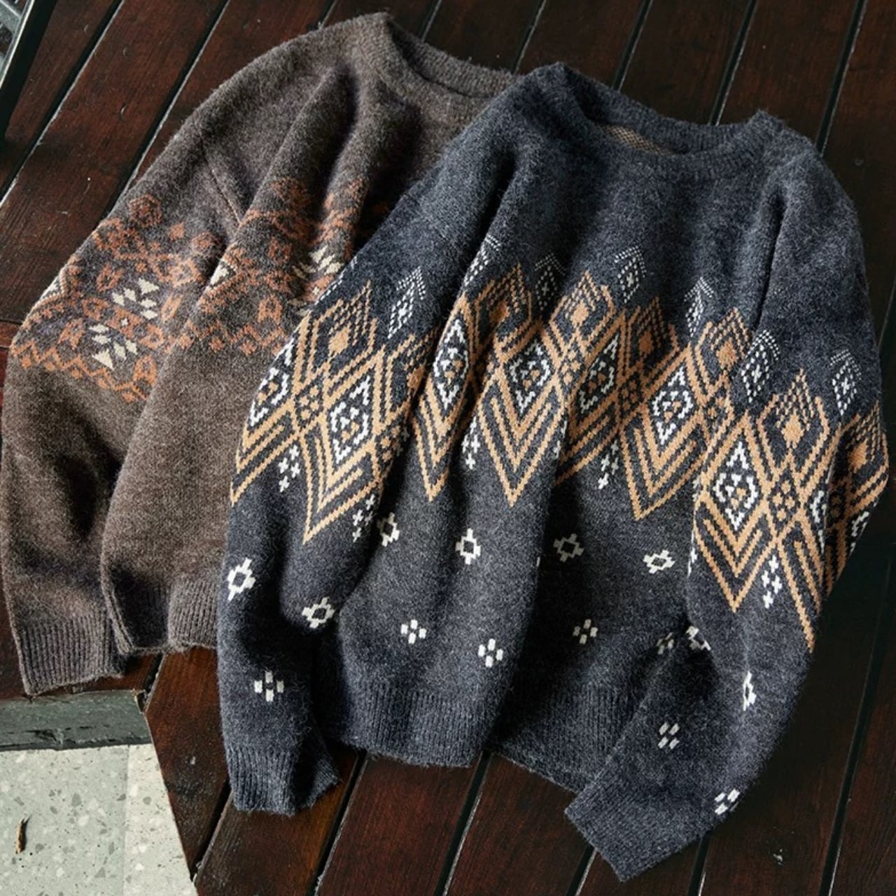 パターン柄 クルーネック ニット セーター 00618