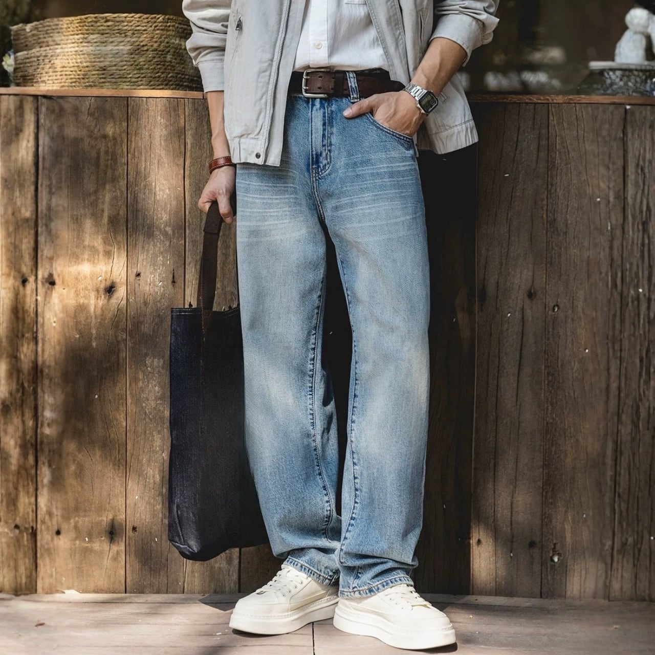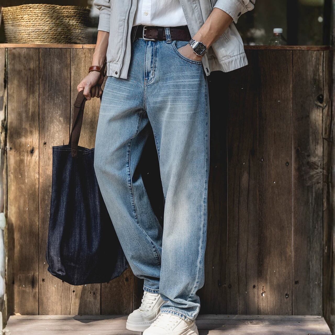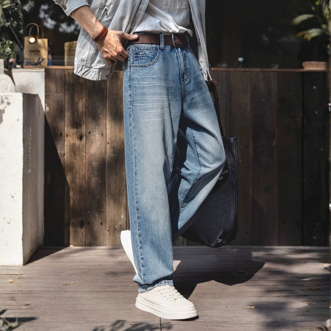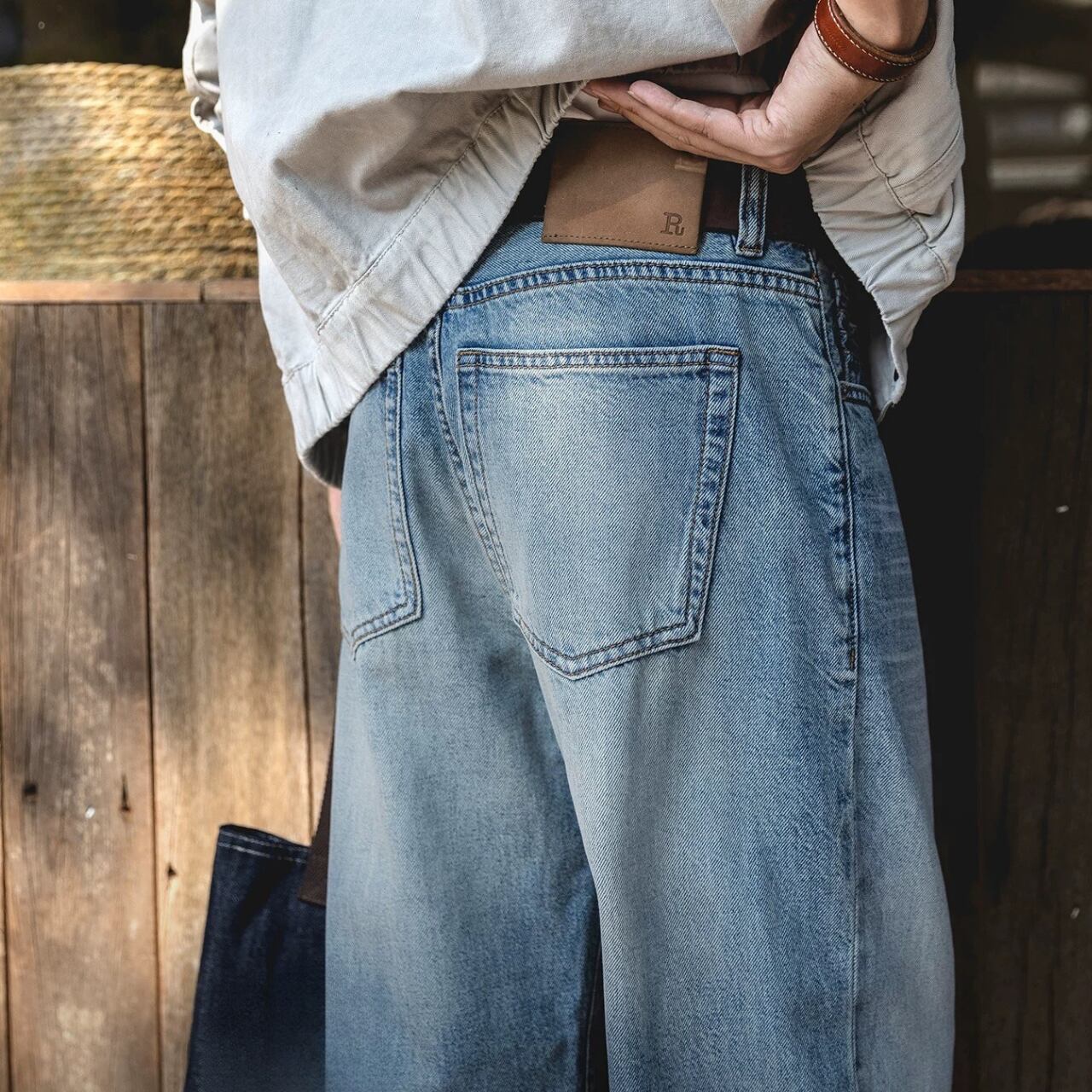 ウォッシュ加工 ワイドレッグ デニムパンツ 00627