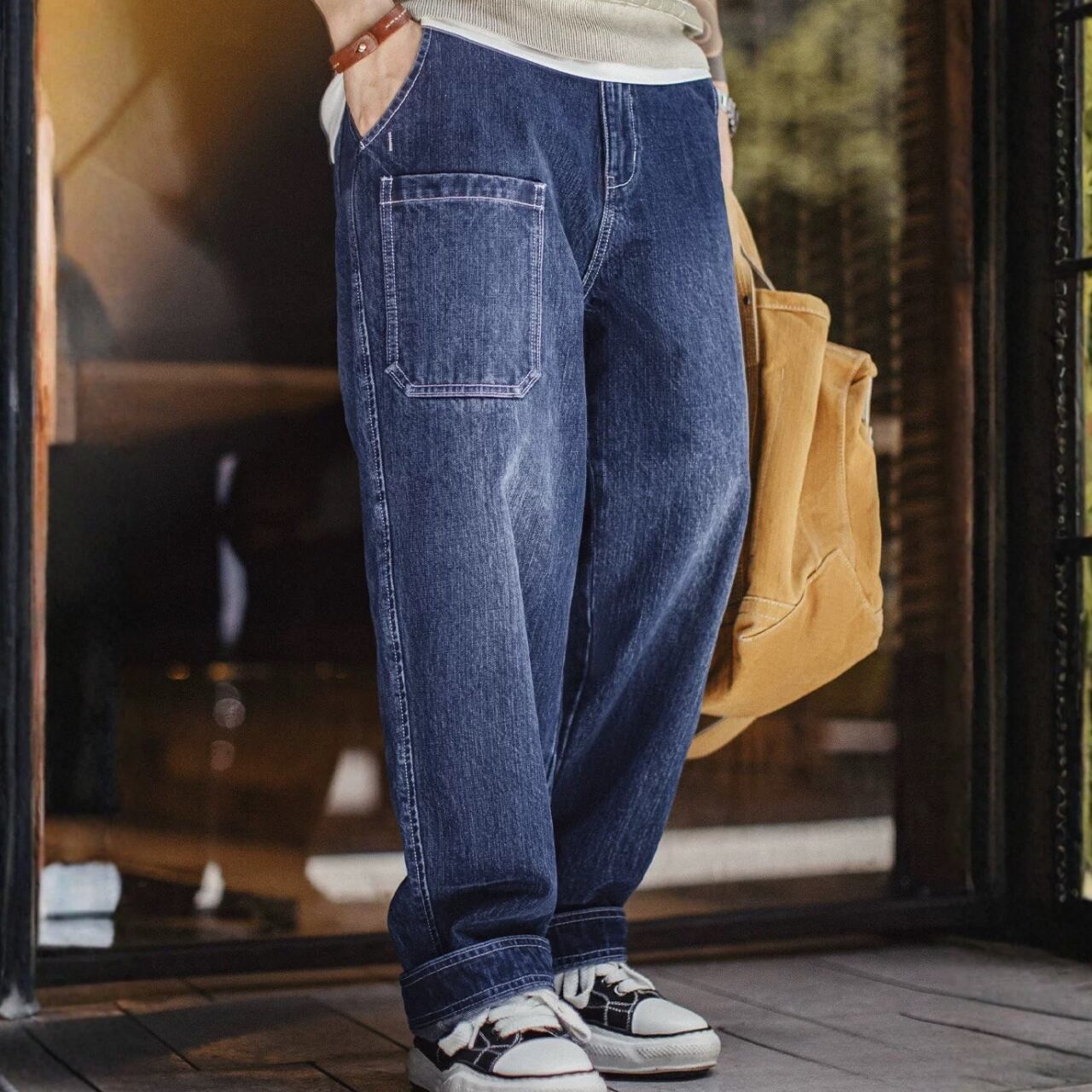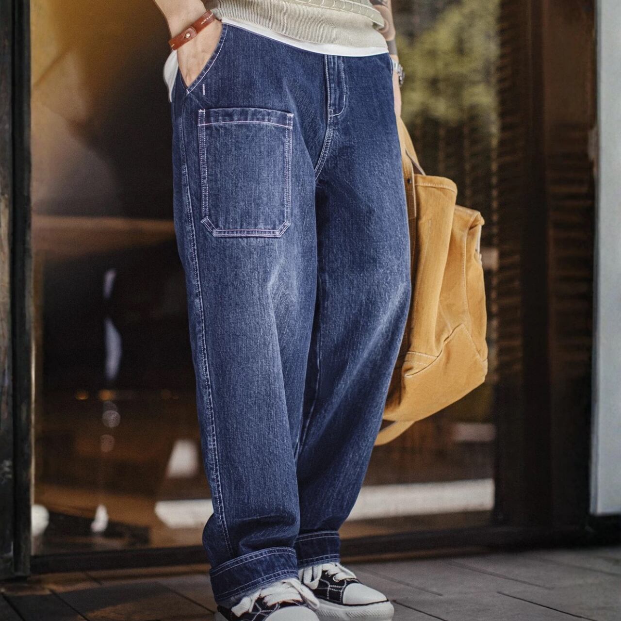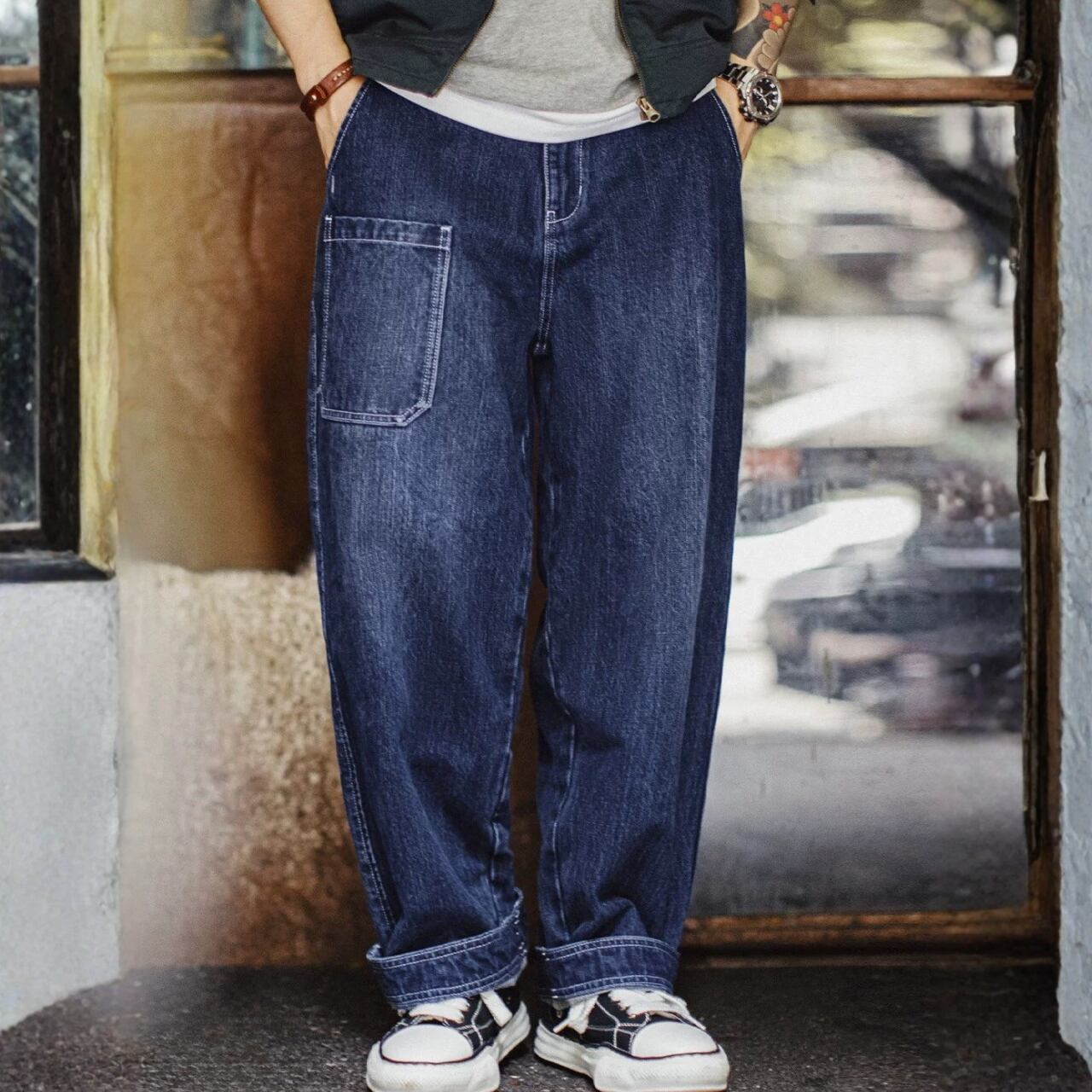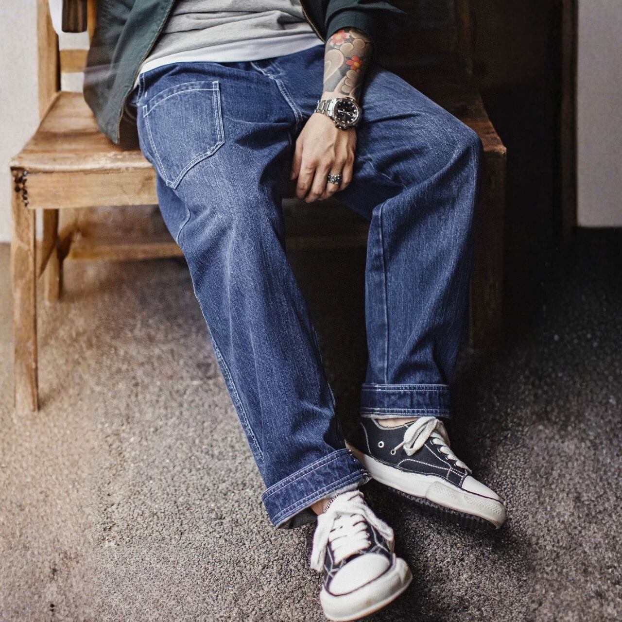 パッチポケット ワイド テーパード デニムパンツ 00631