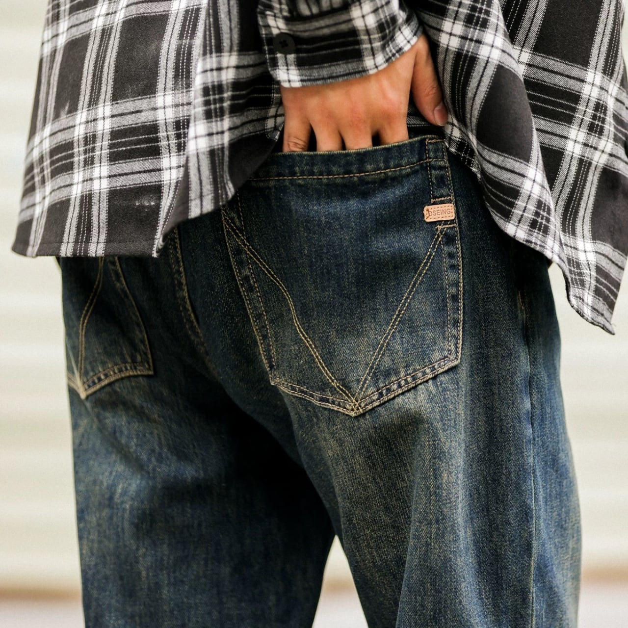 バックポケット V字ステッチ ルーズフィットパンツ 00124