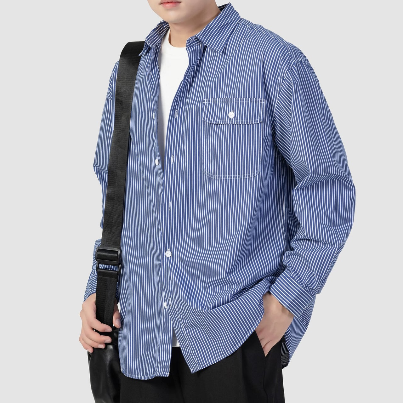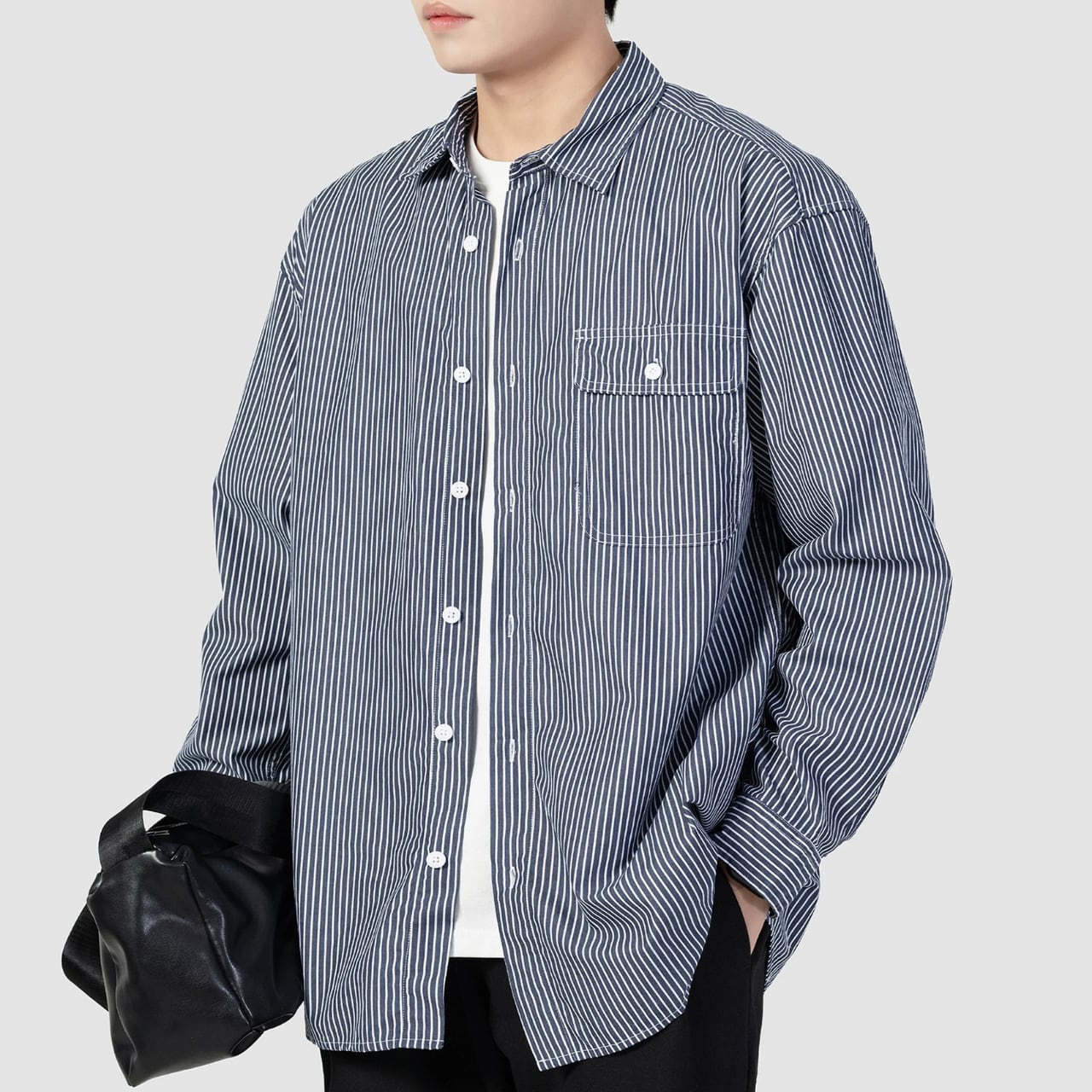 ストライプ柄 ロングスリーブ ボタンダウンシャツ 00125