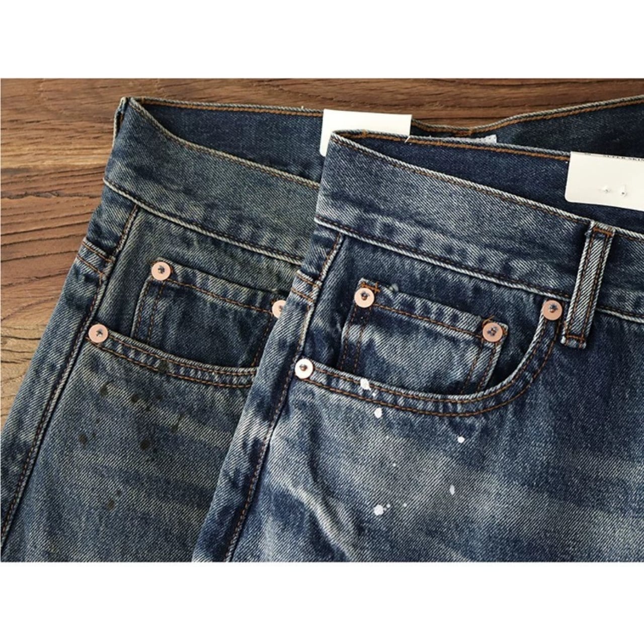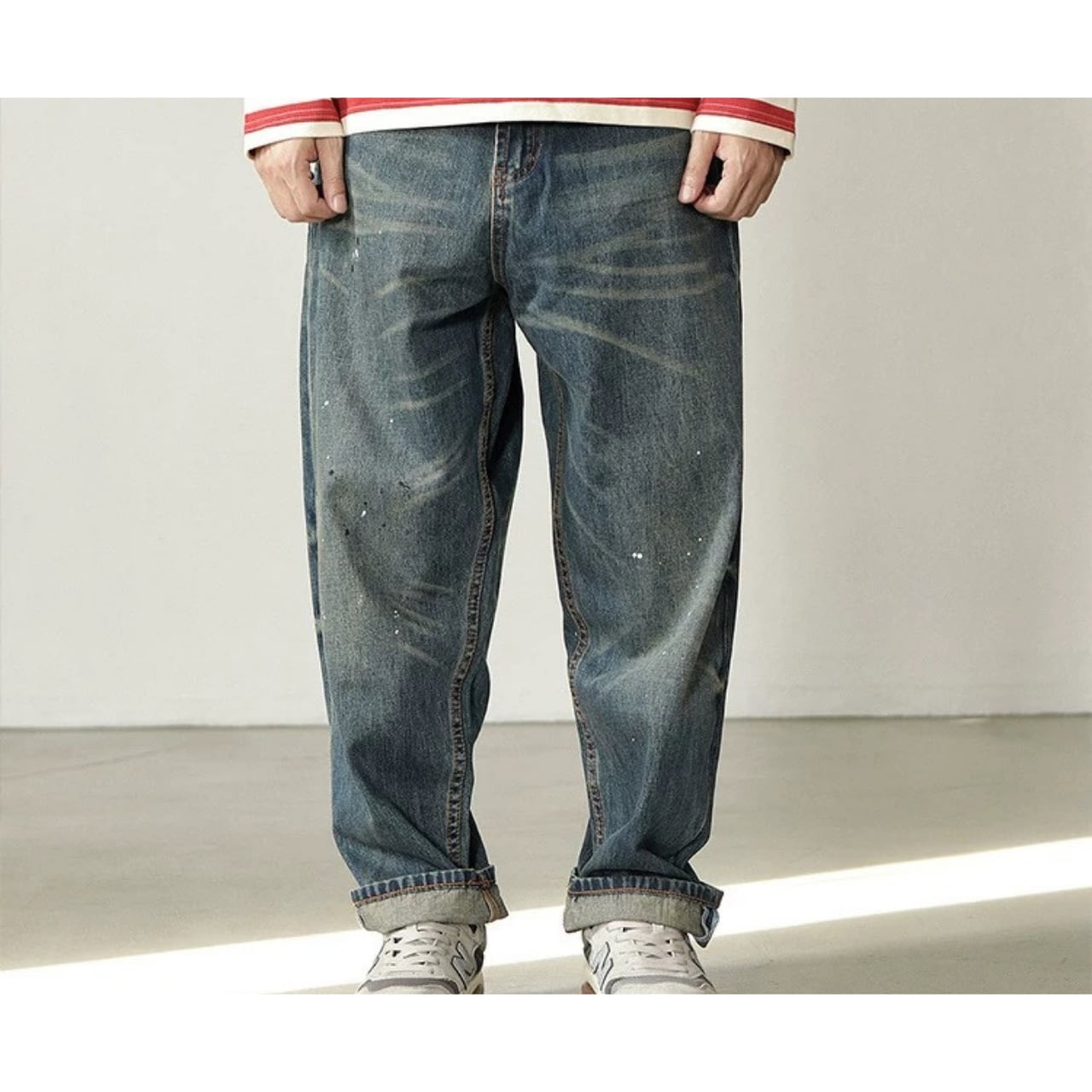 ペイント加工 ワイドレッグ ストレートパンツ 00146