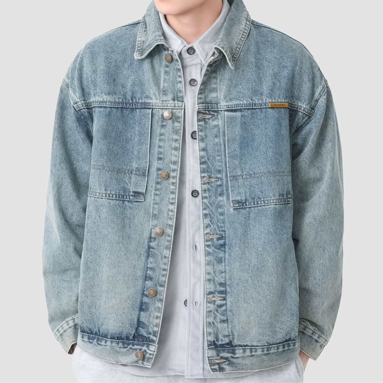オーバーサイズジャケット ボタンフロント パッチポケット付きジャケット 00162