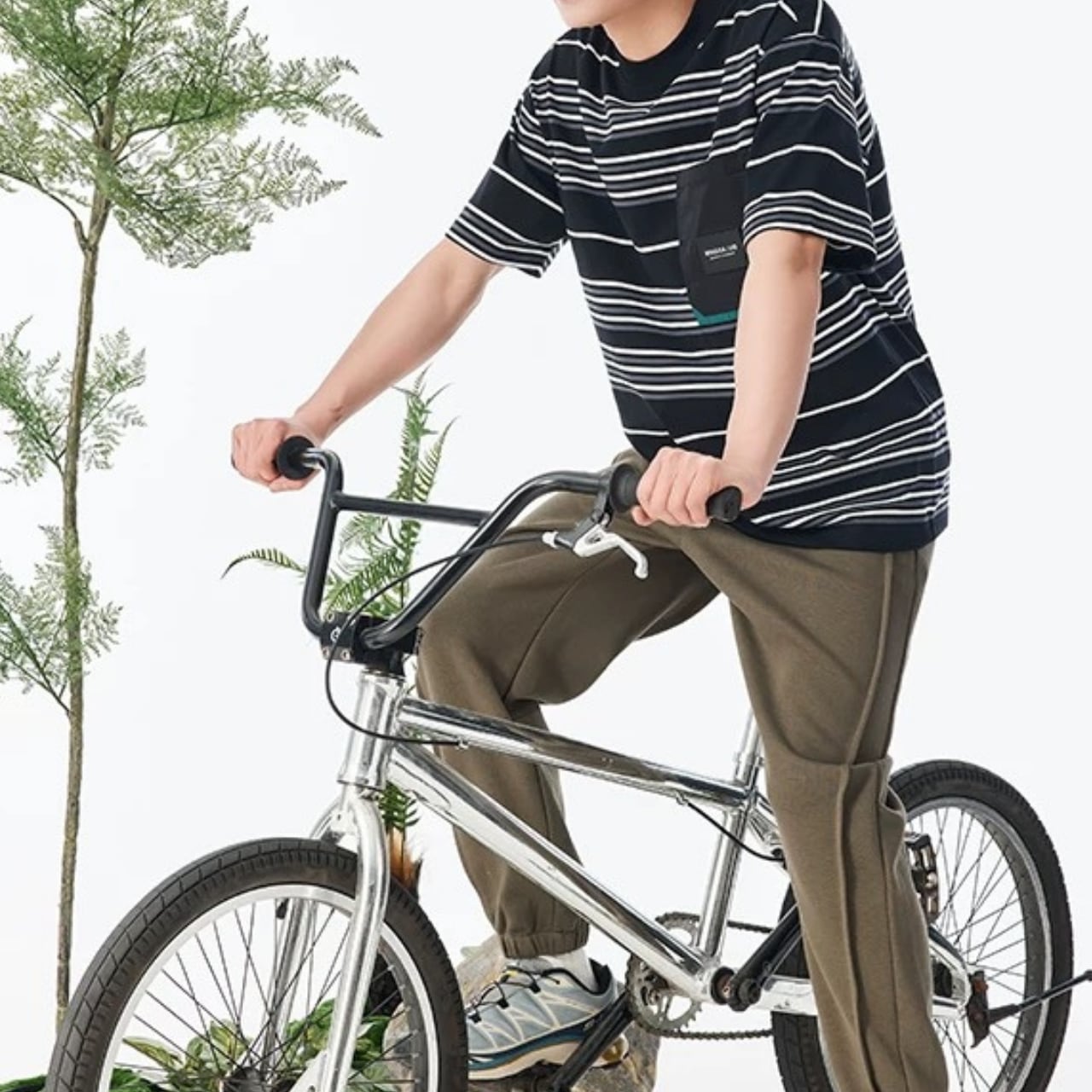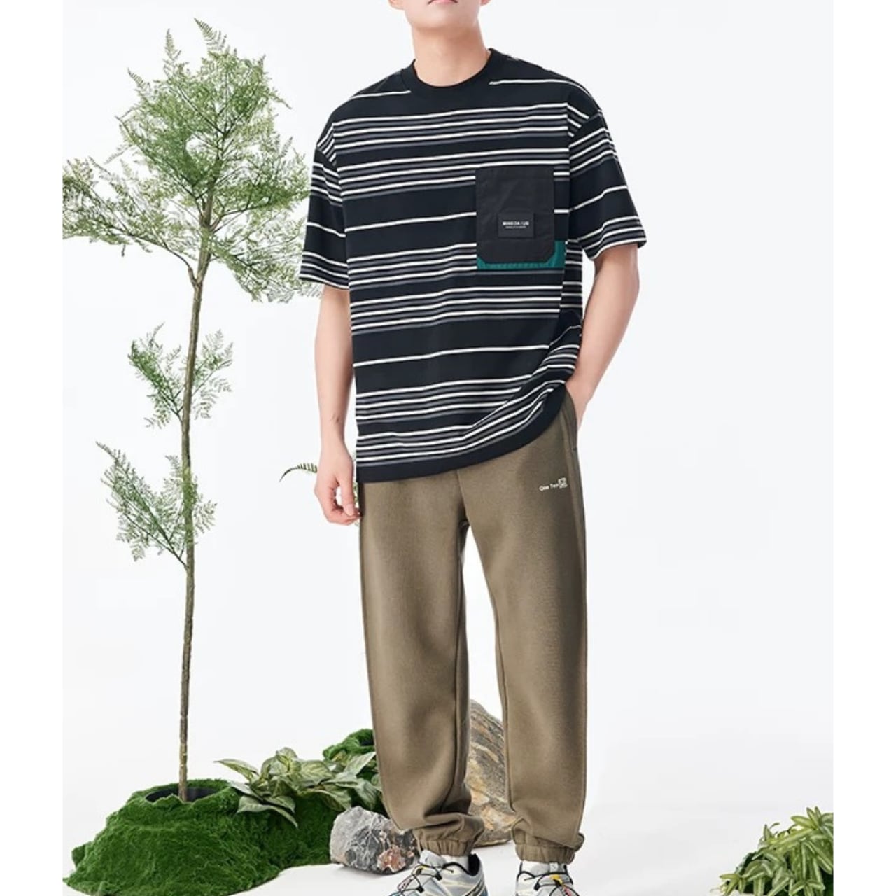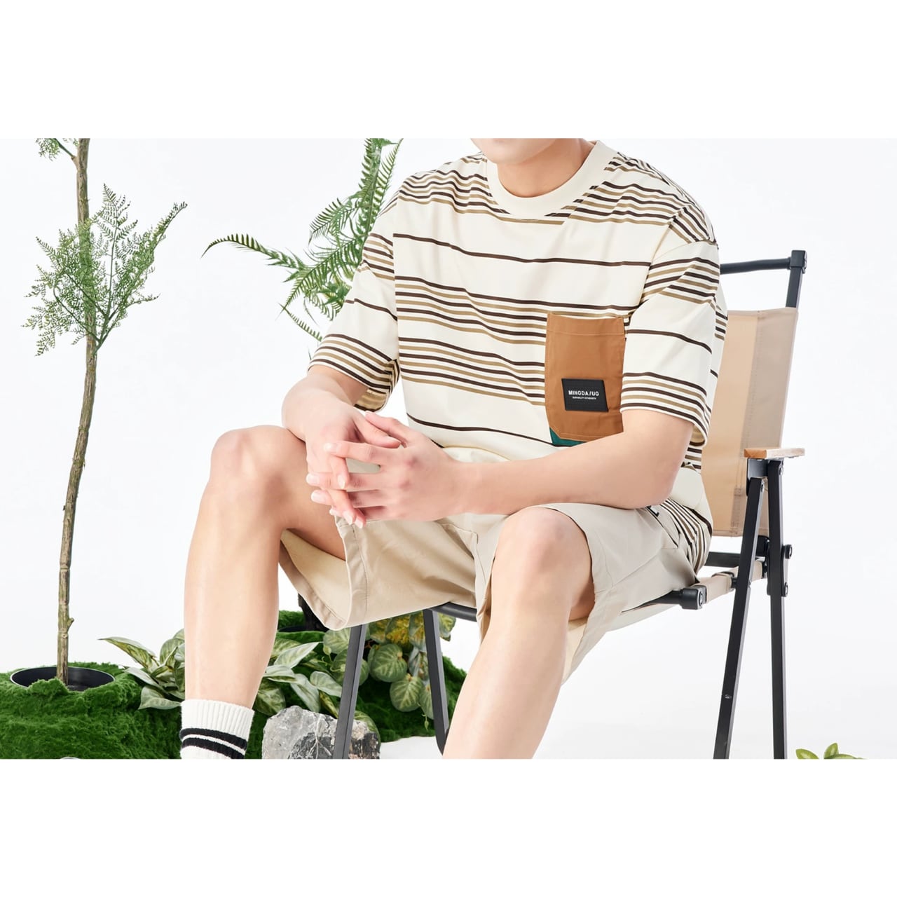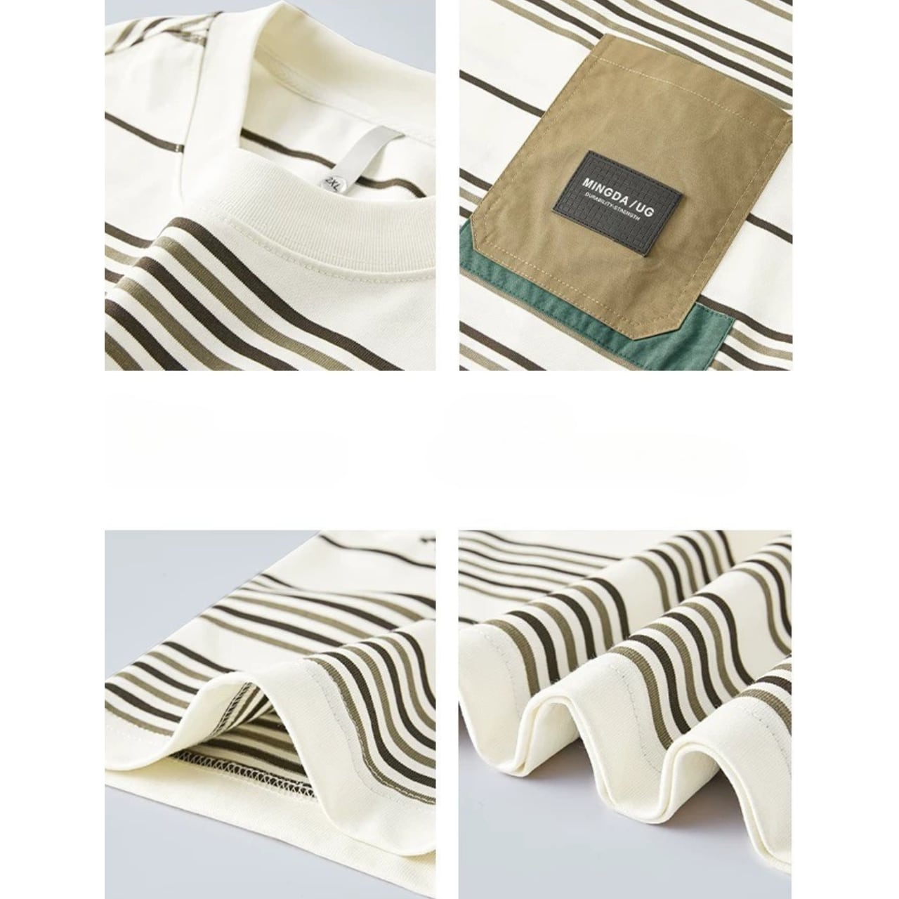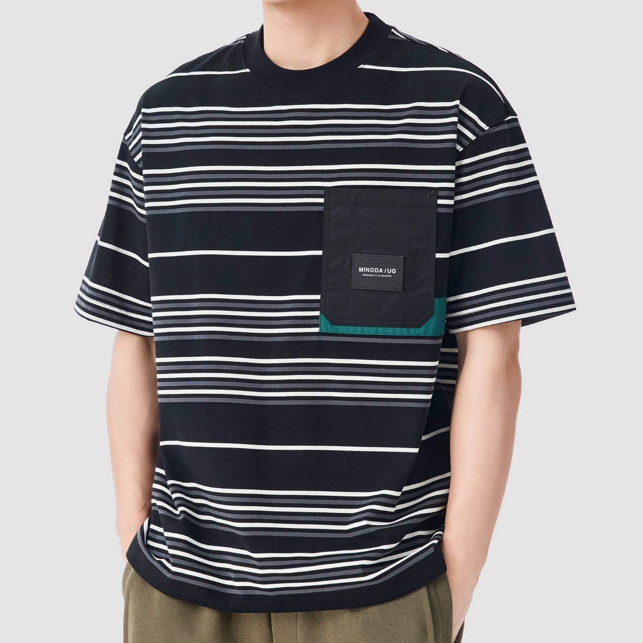 パッチポケット付き ストライプ柄 クルーネックTシャツ 00197