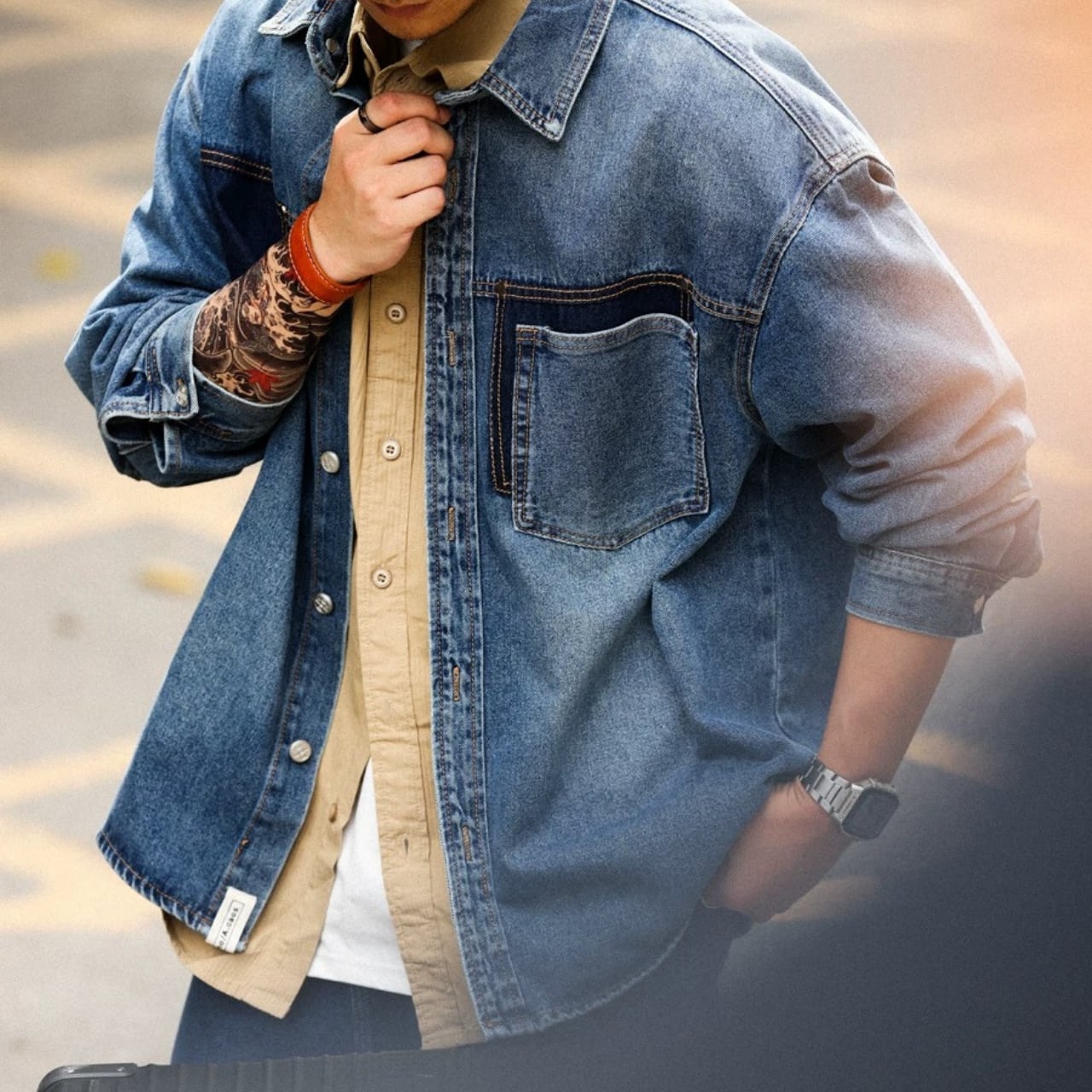 パッチポケット付き オーバーサイズ デニムシャツ 00203