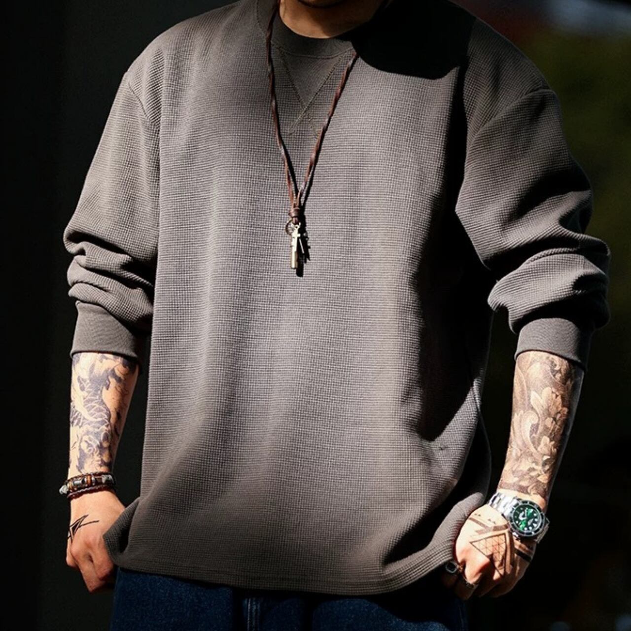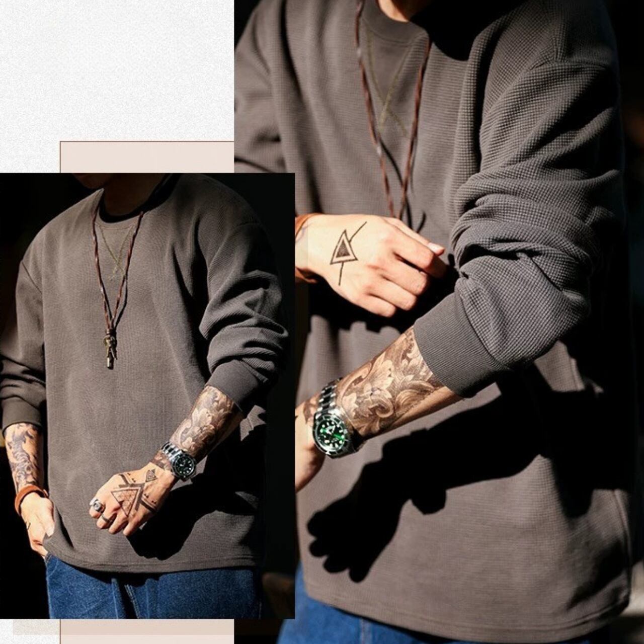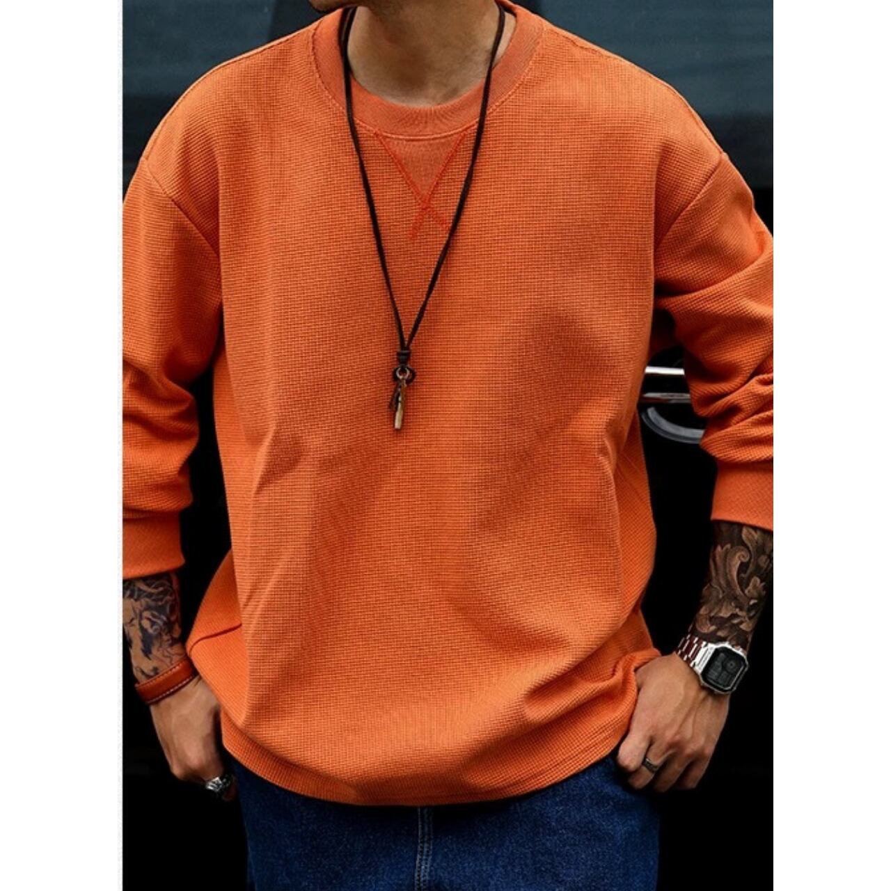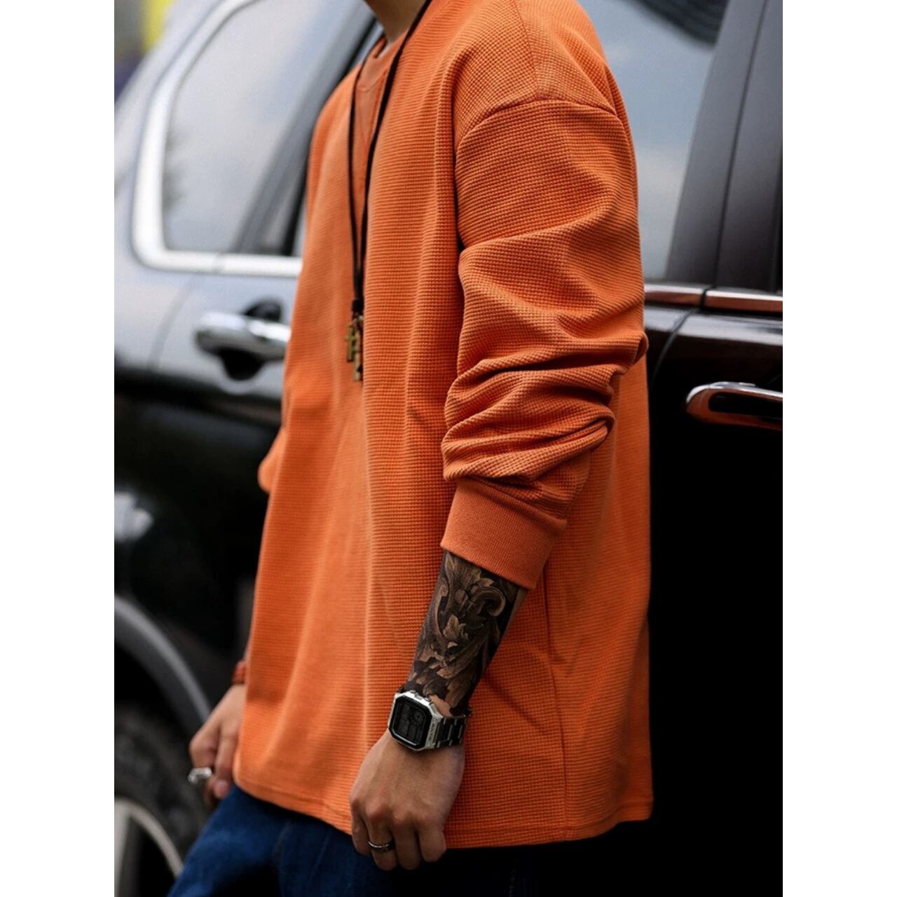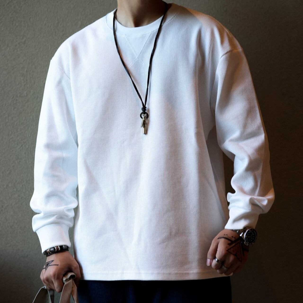 ワッフル生地 クルーネック ロングスリーブシャツ 00204