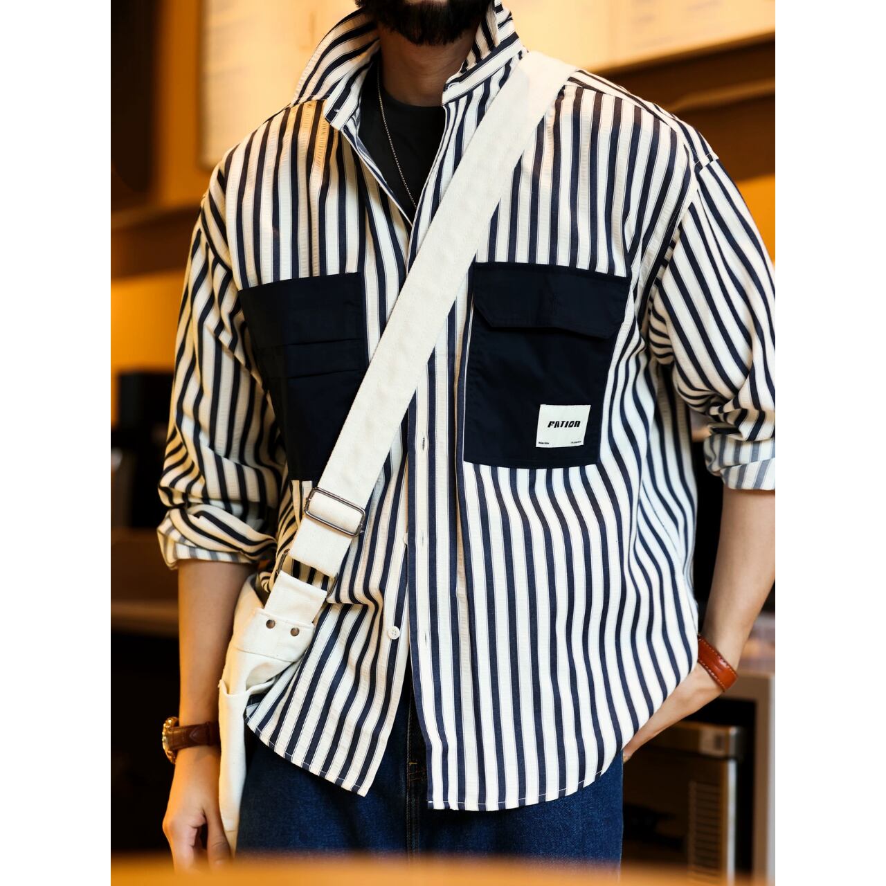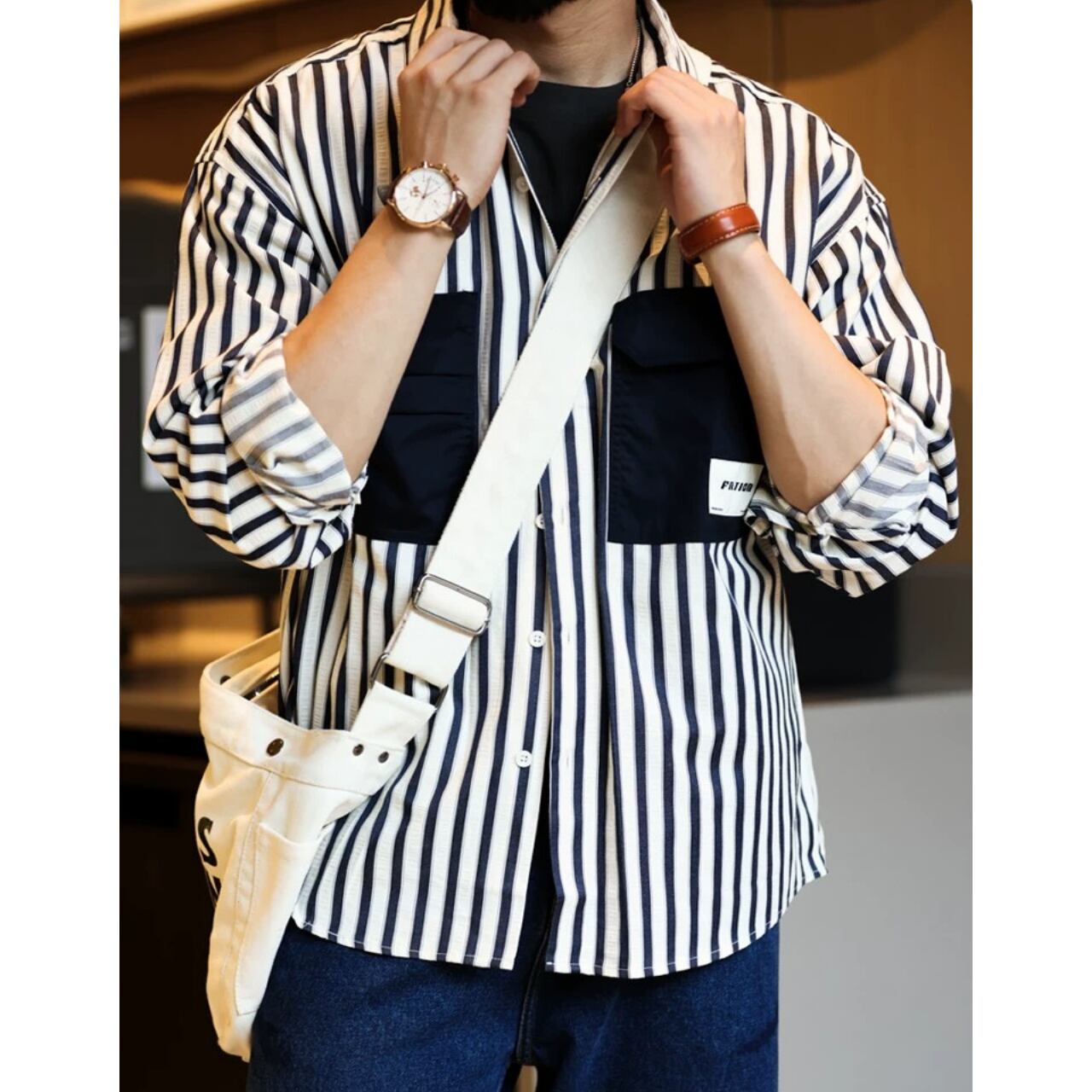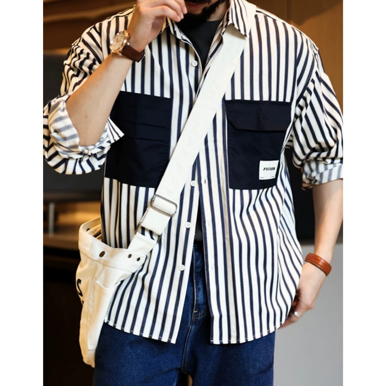 ストライプ柄 ロングスリーブ ボタンダウンシャツ 00212