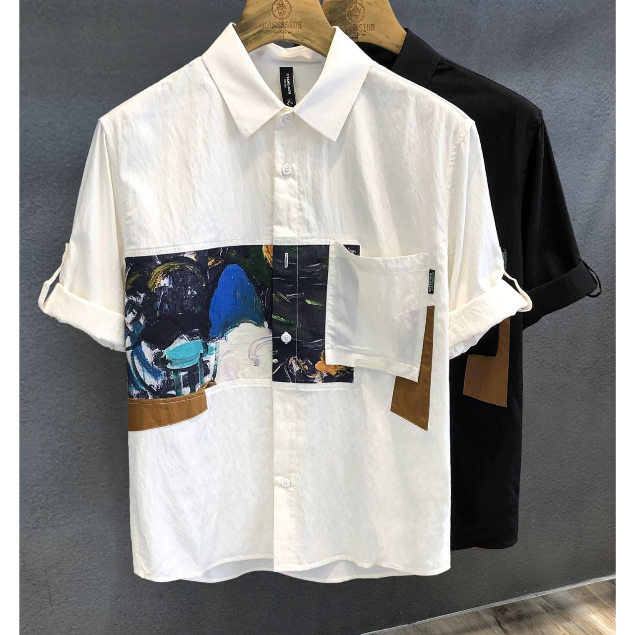 パッチポケット付き ロールアップスリーブ ボタンダウンシャツ 00217