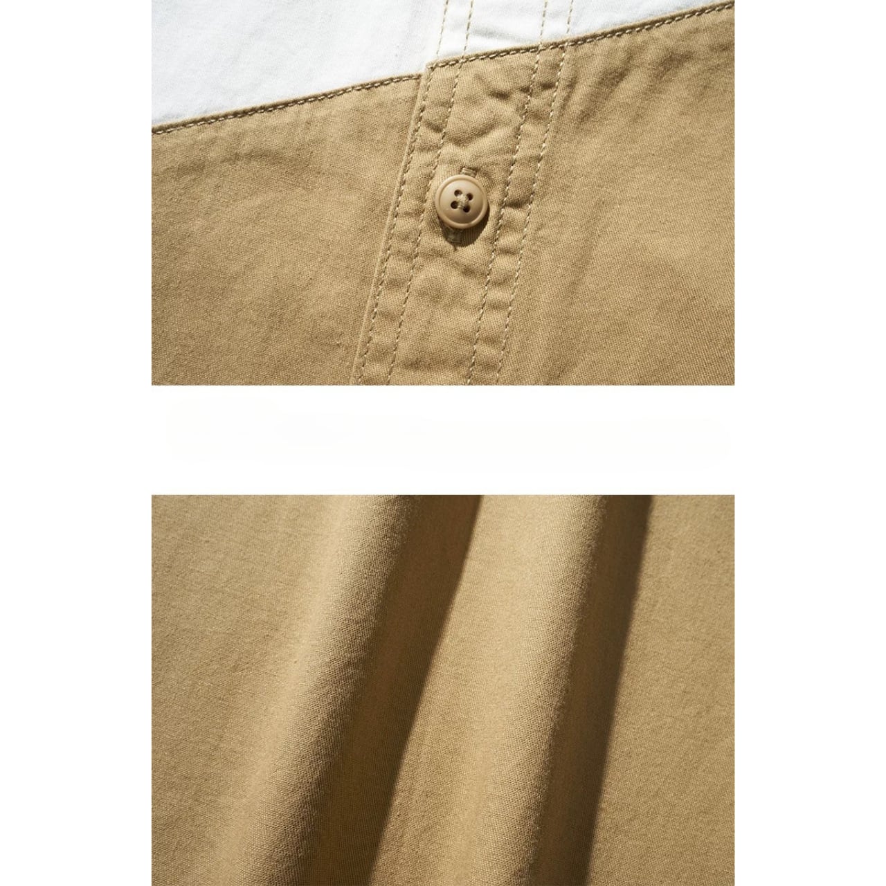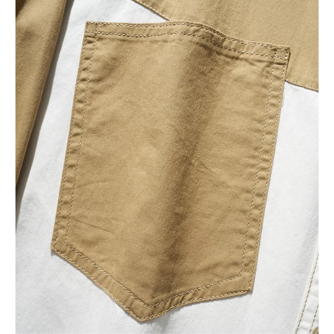 パッチワークデザイン ポケット付き ボタンダウンシャツ 00218