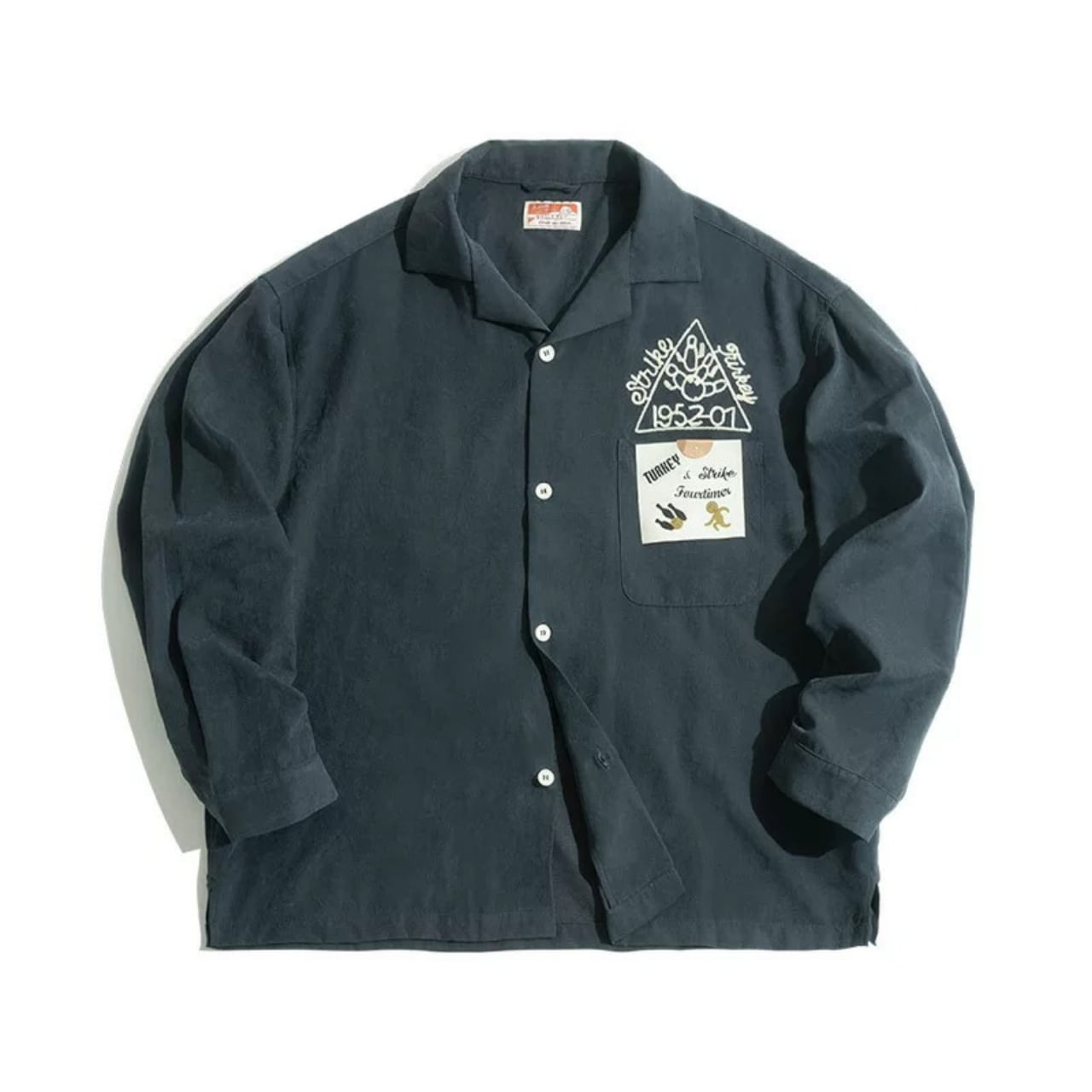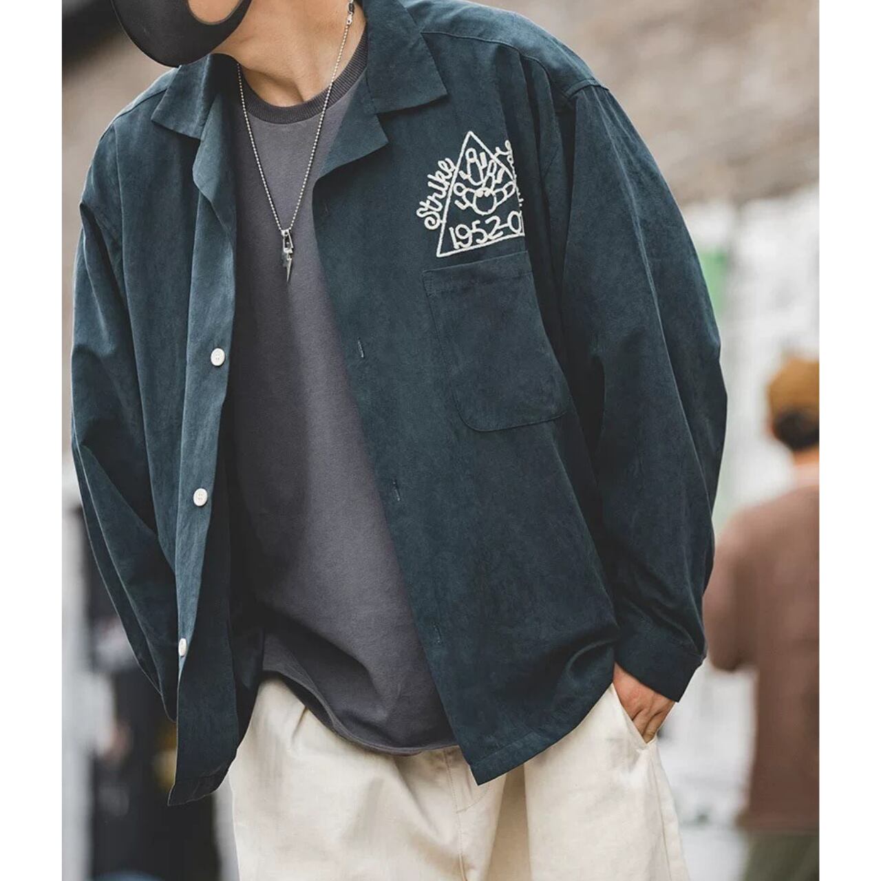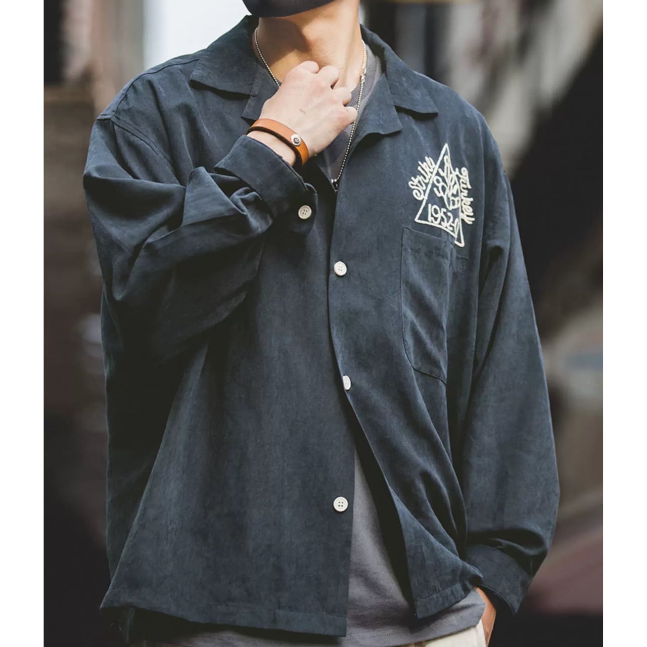 オープンカラー 刺繍入り ボタンダウンシャツ 00221