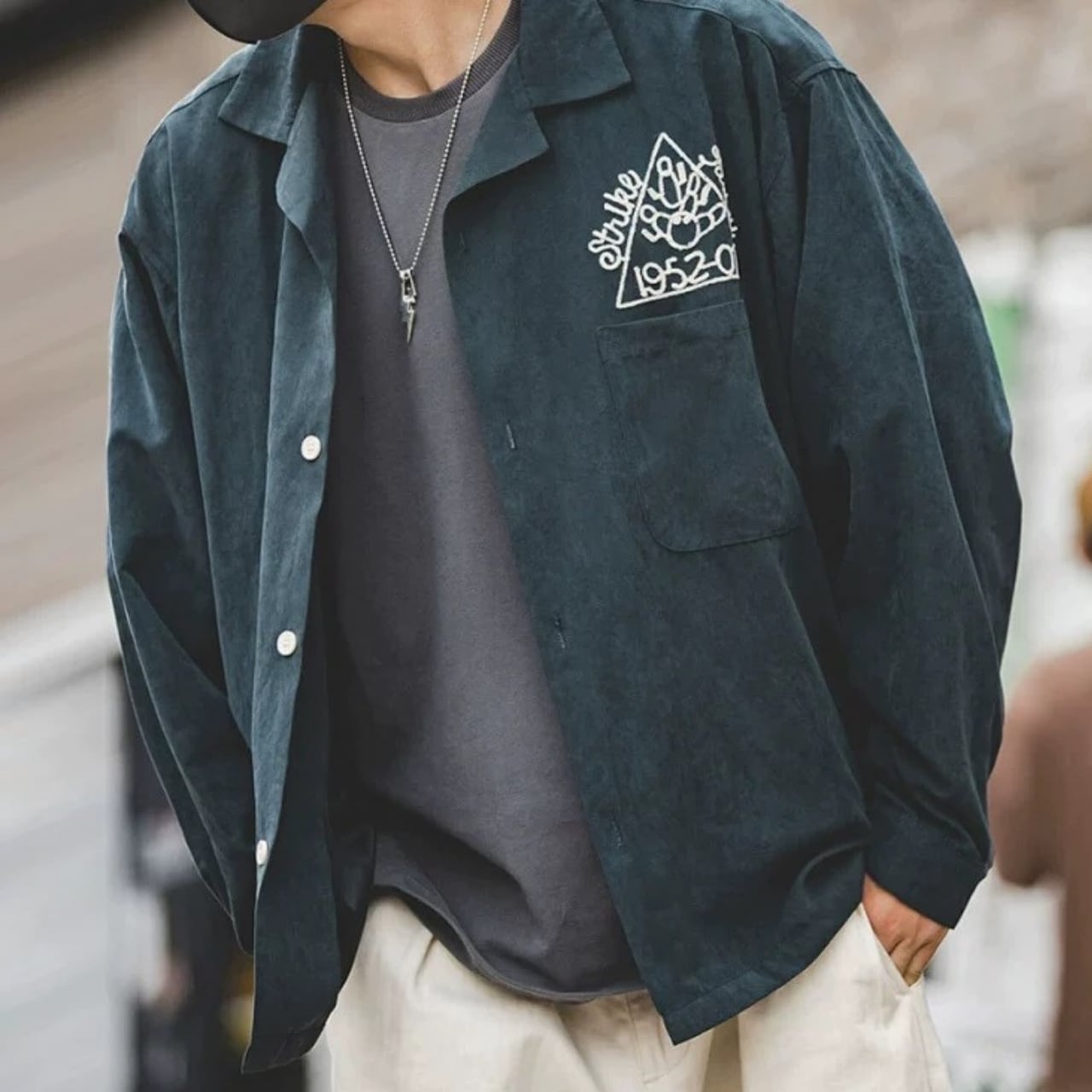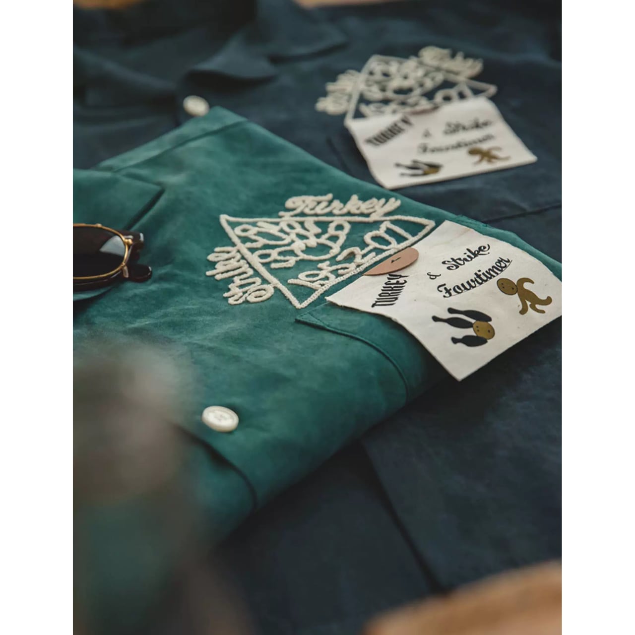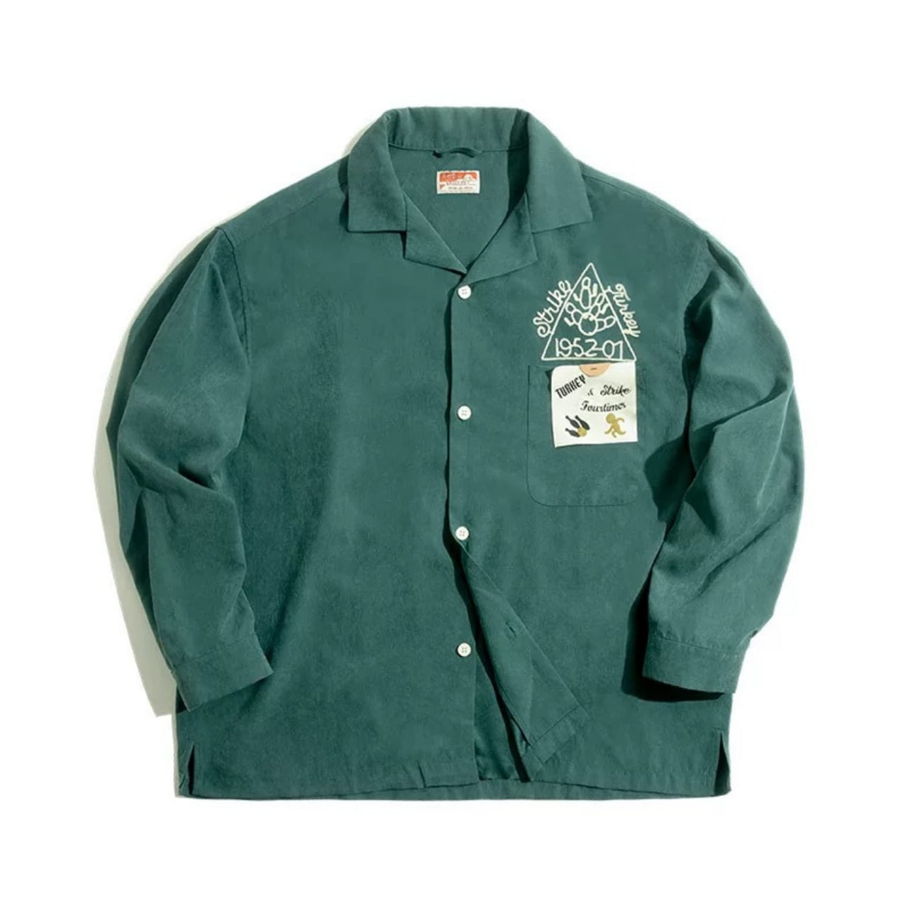 オープンカラー 刺繍入り ボタンダウンシャツ 00221
