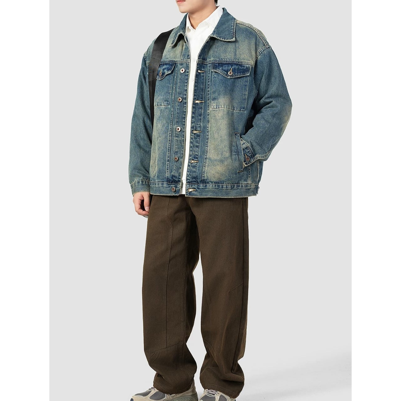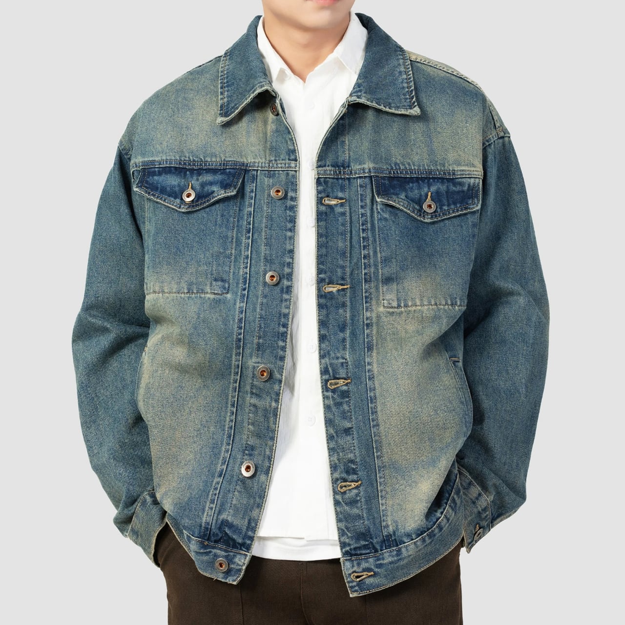 ボタン留め 胸ポケット付き オーバーサイズデニムジャケット 00242