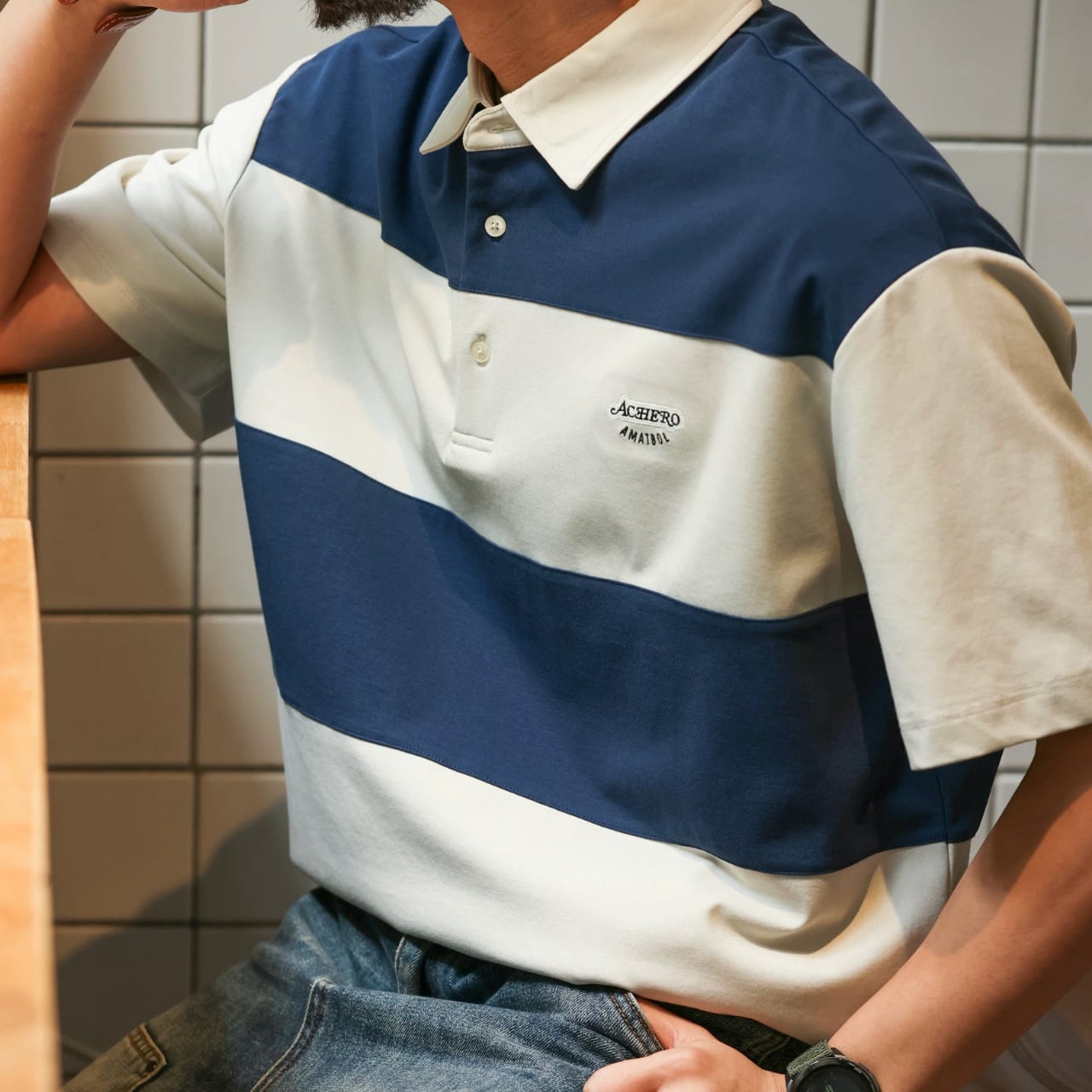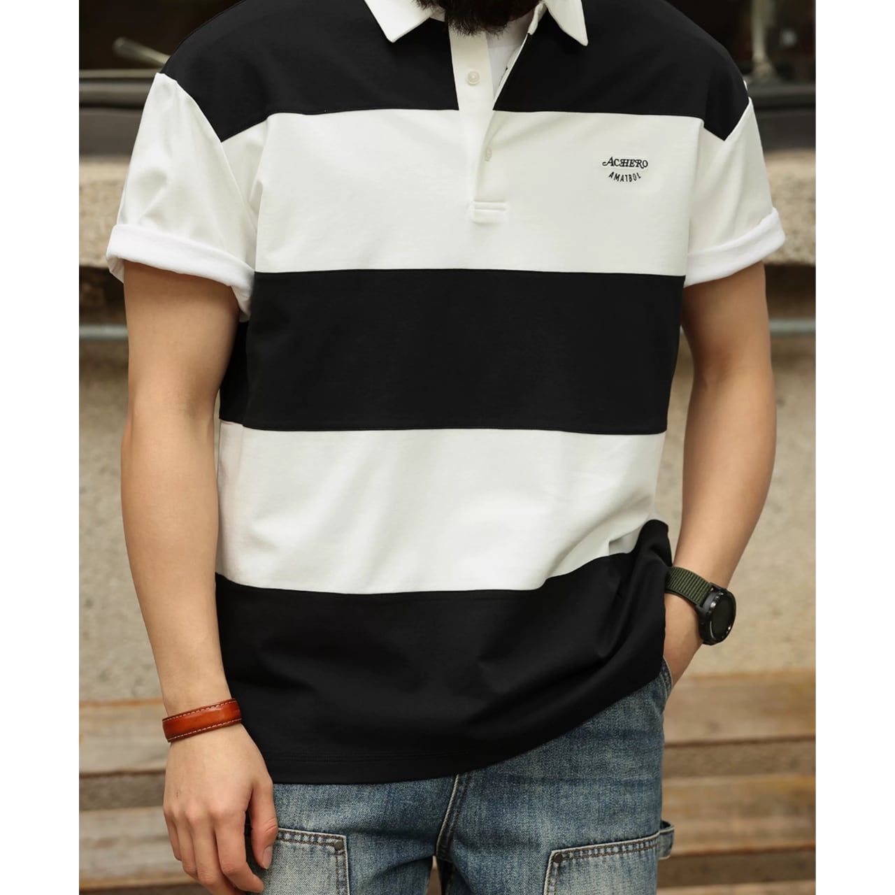 ストライプ柄 ショートスリーブ ポロシャツ 00365